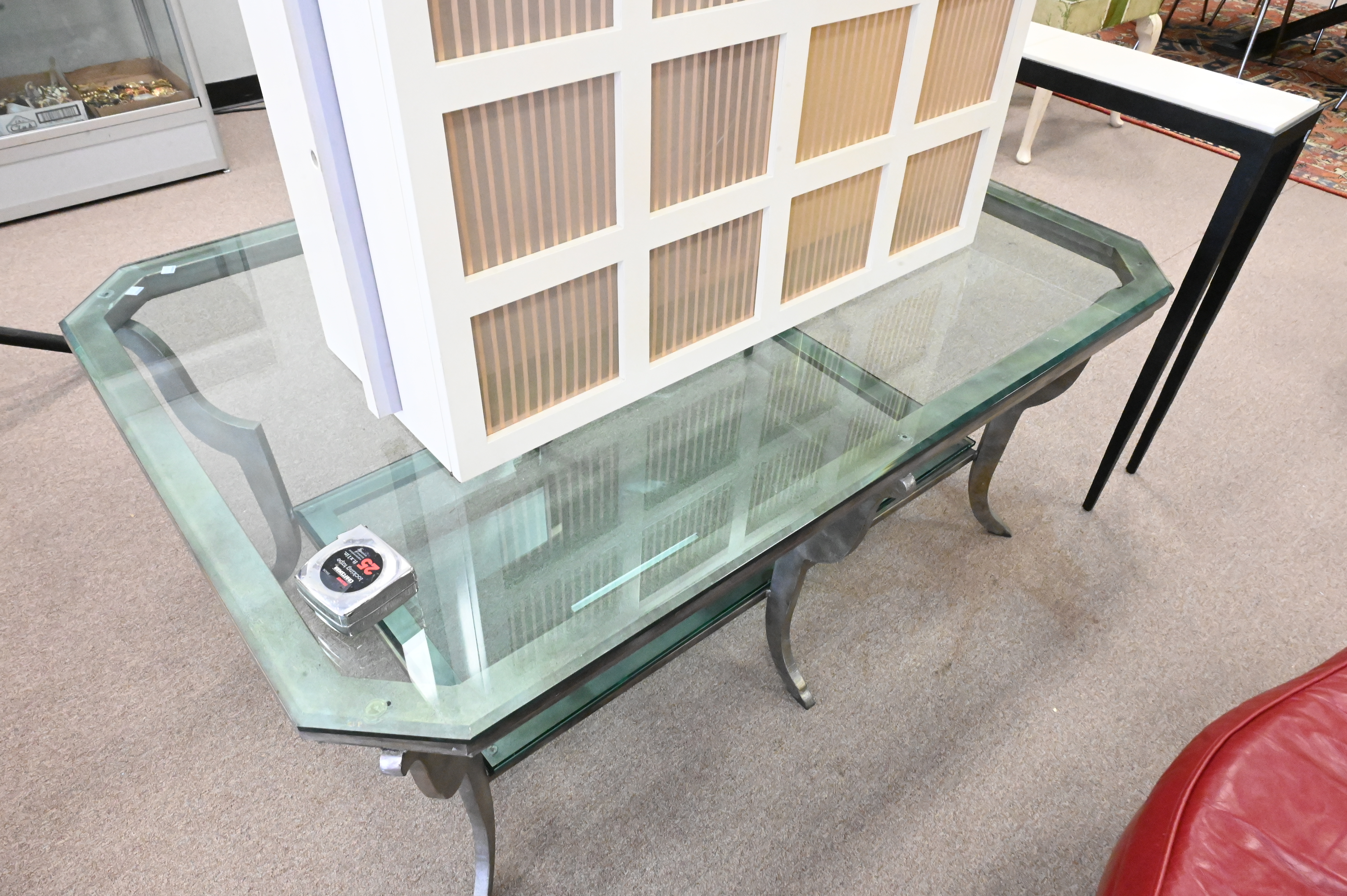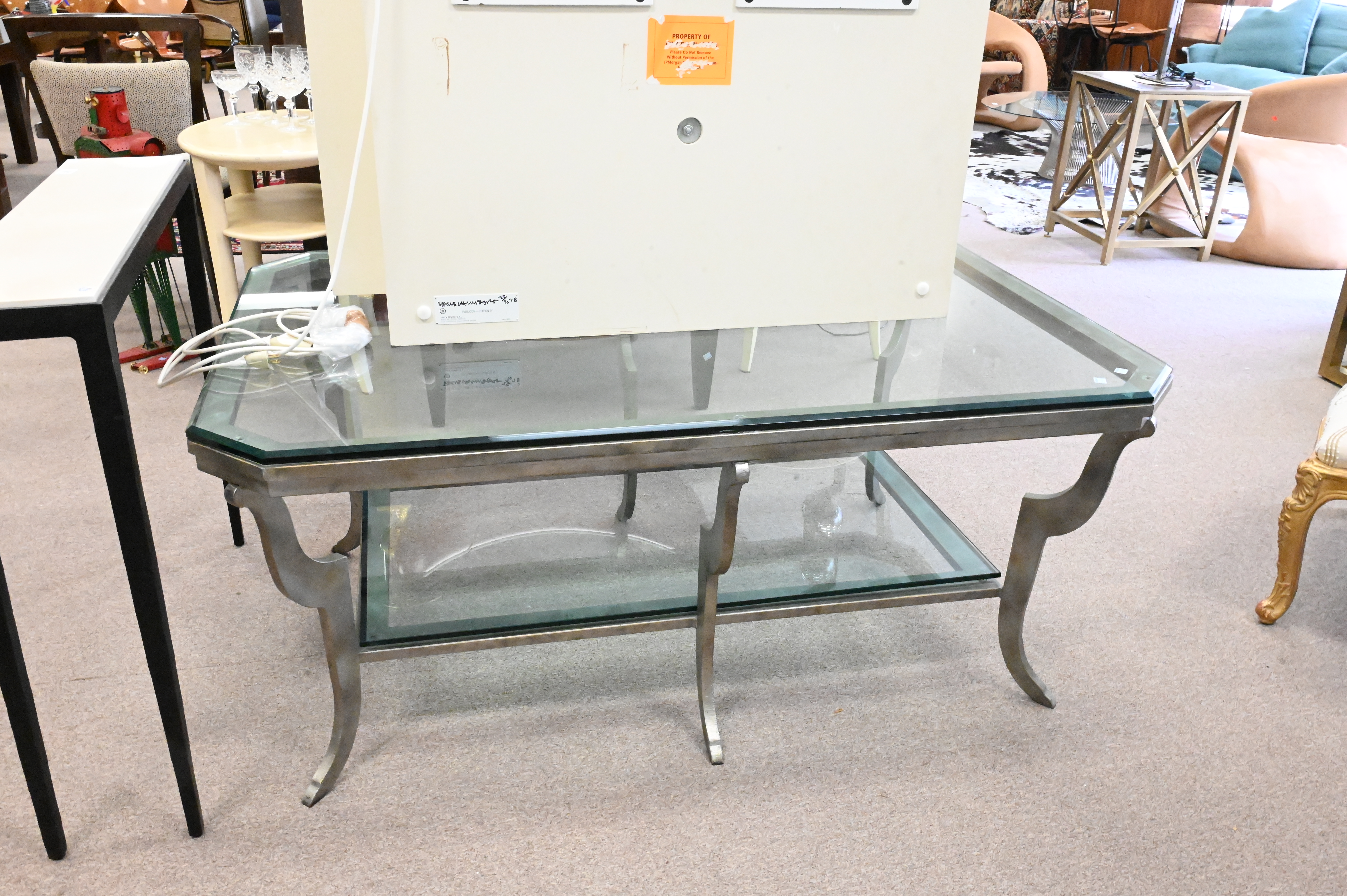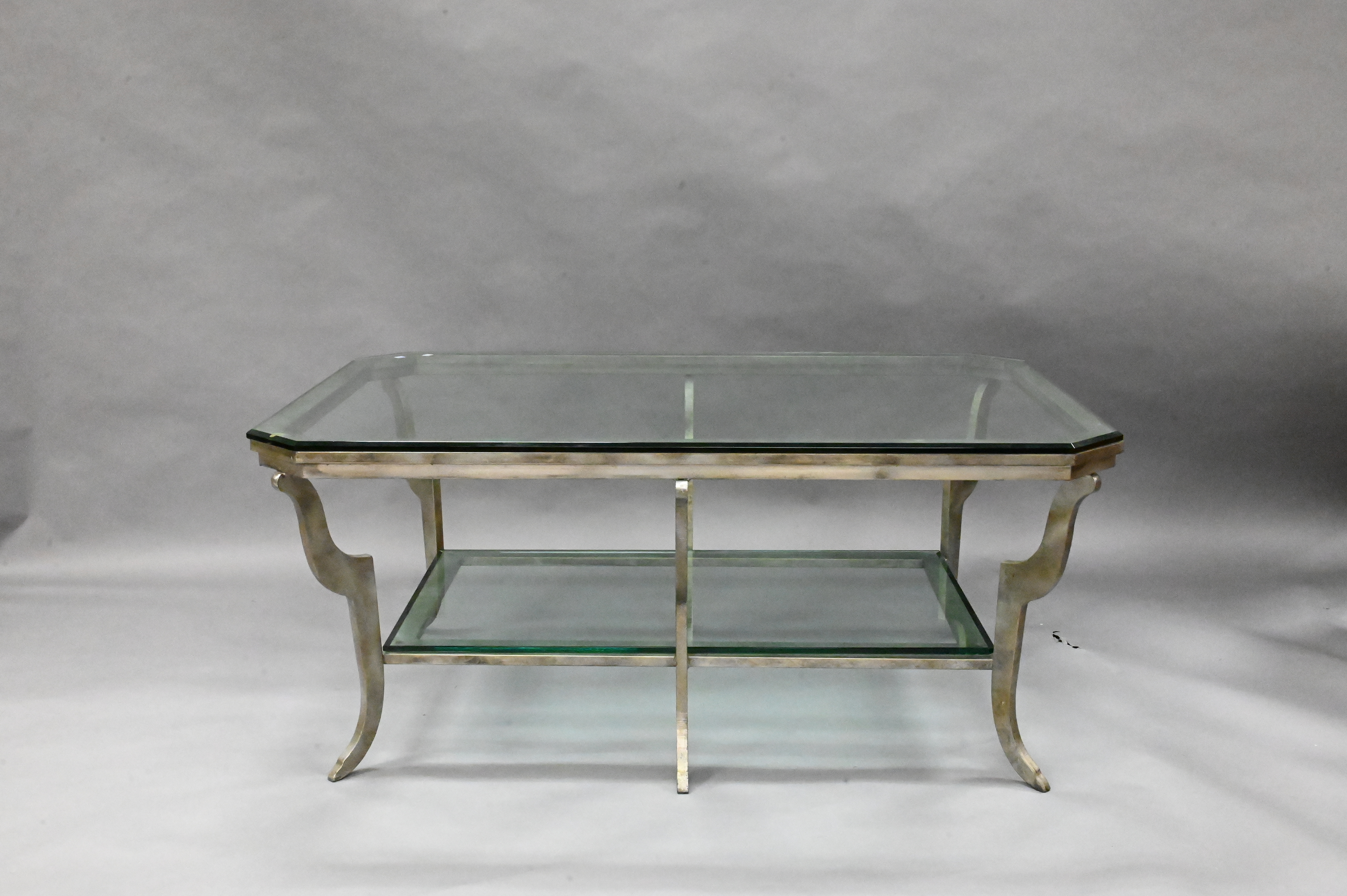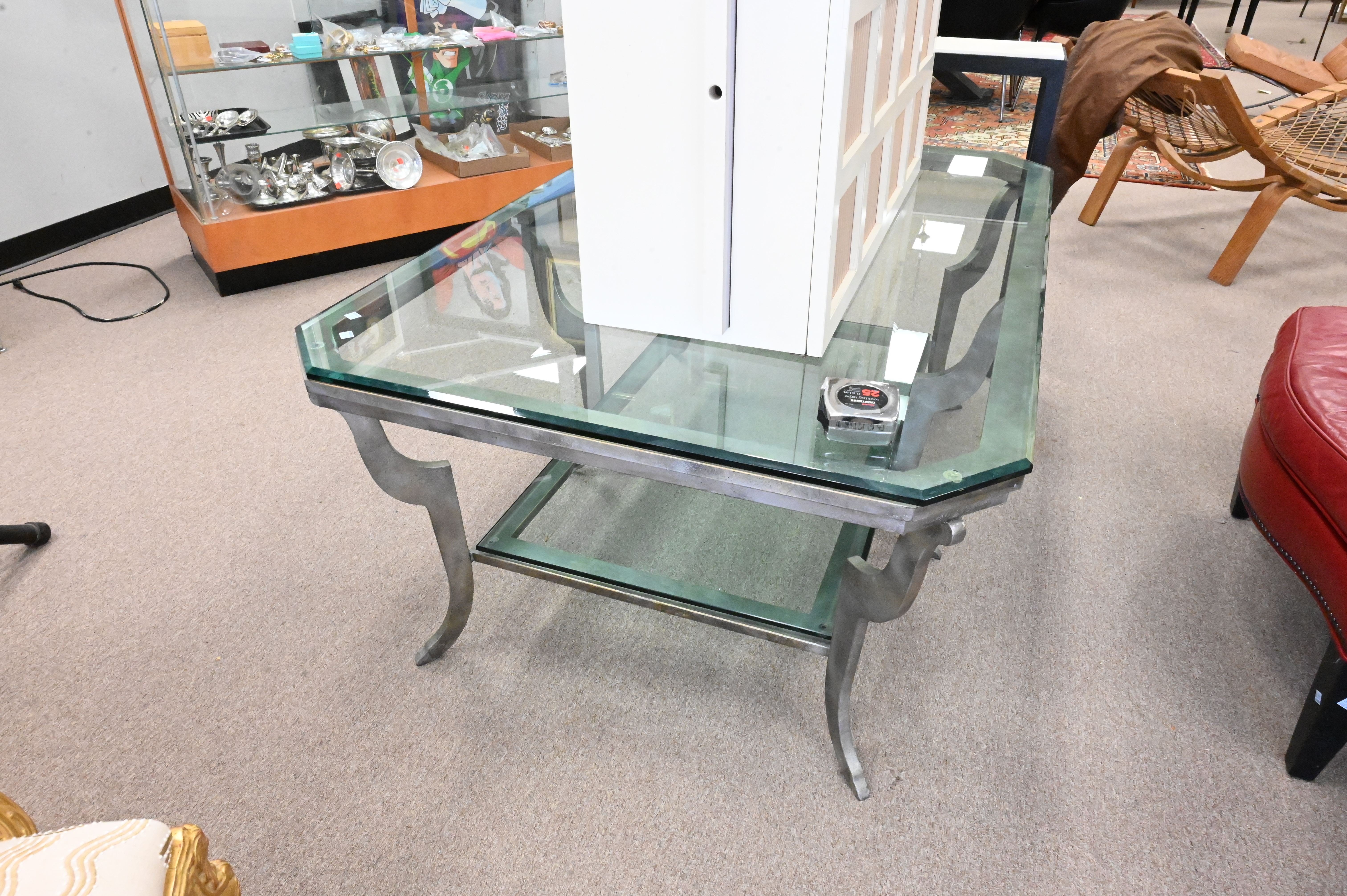 Lot 281A: Large Silver Metal and Beveled Glass Coffee Table