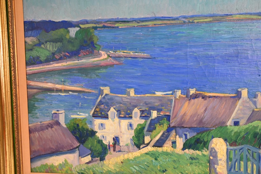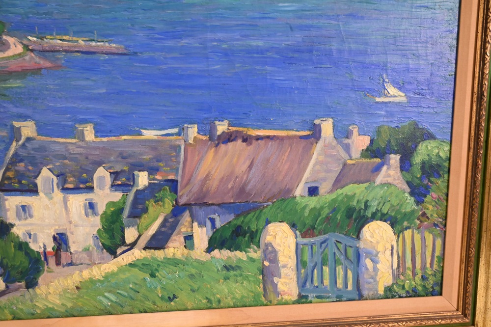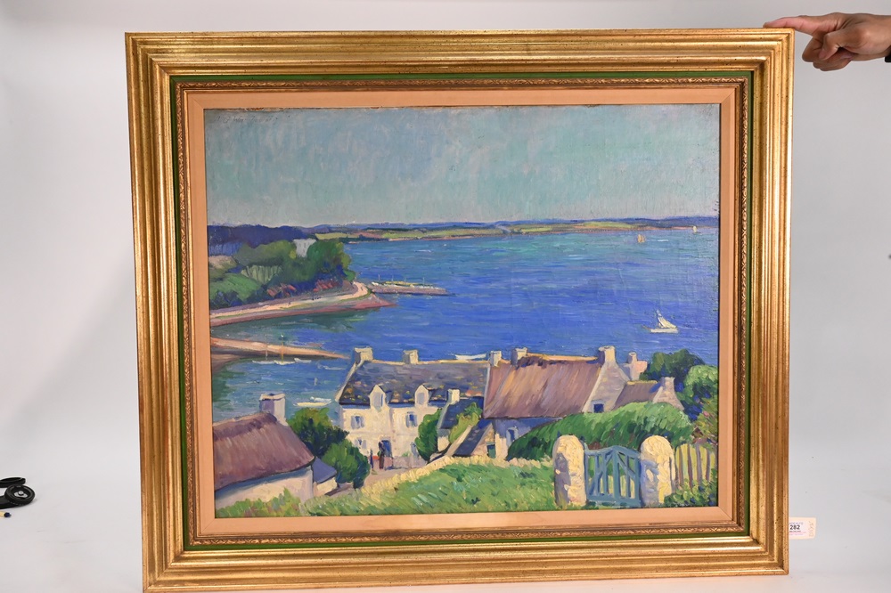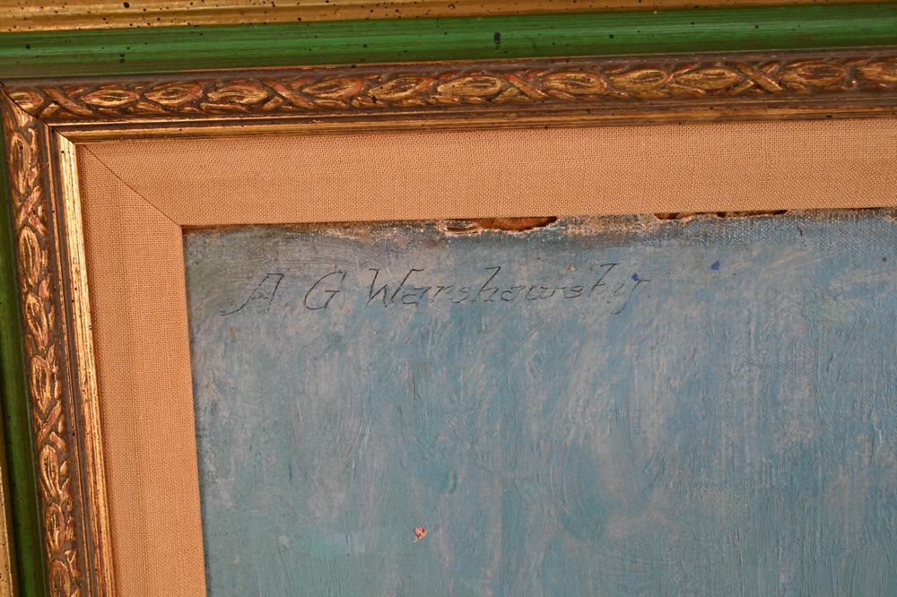 Lot 282: Abel George Warshawsky (1883 – 1962), Ocean Bay, inlet with boats, oil on canvas mounted on artist board, signed lower left A.G. War…