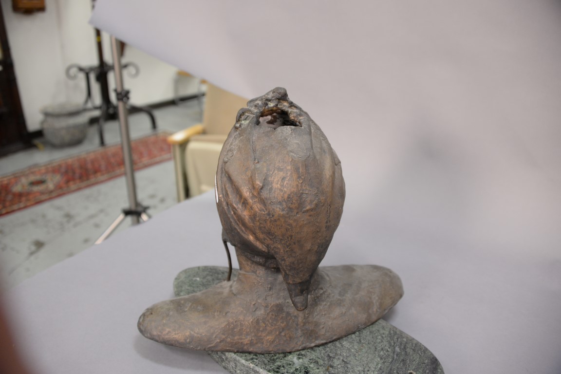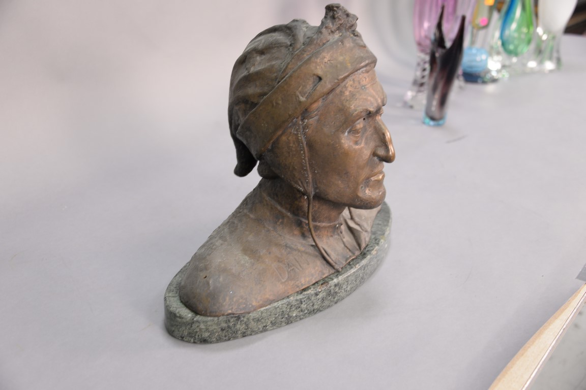 Bronze bust sculpture of Dante on marble base. ht. 14 in. wd. 17 in.