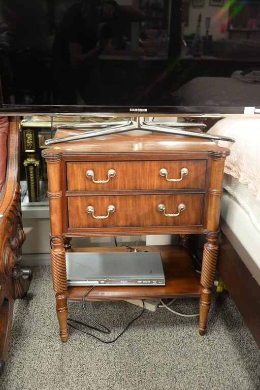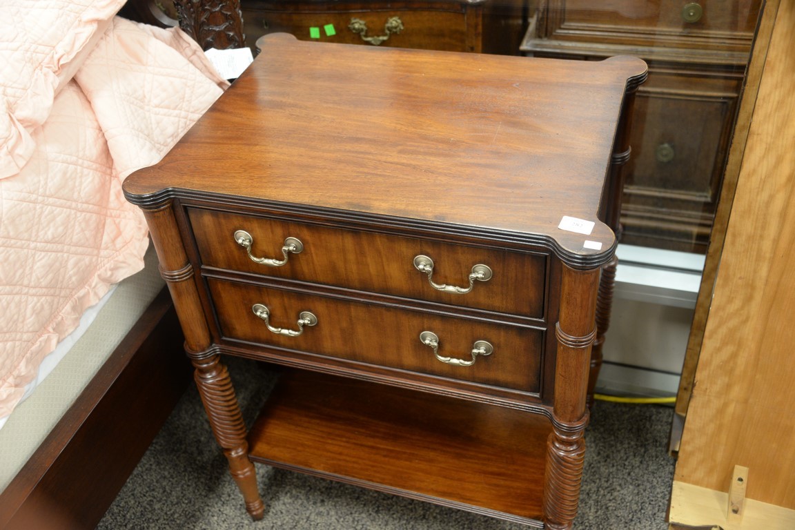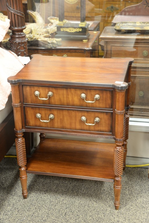 Ethan Allen pair of two drawer mahogany night tables. ht. 31in., top: 17 x 23