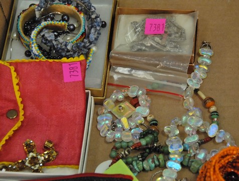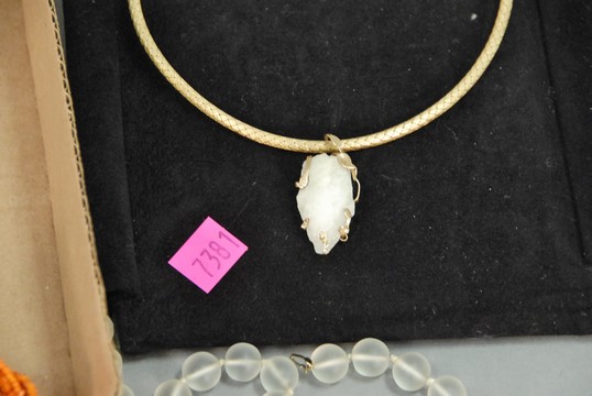 Lot 282: Lot of Dichroic glass necklace, bracelet, and earrings, amber bracelet, frosted glass necklace and bracelet, and necklace and bracel…