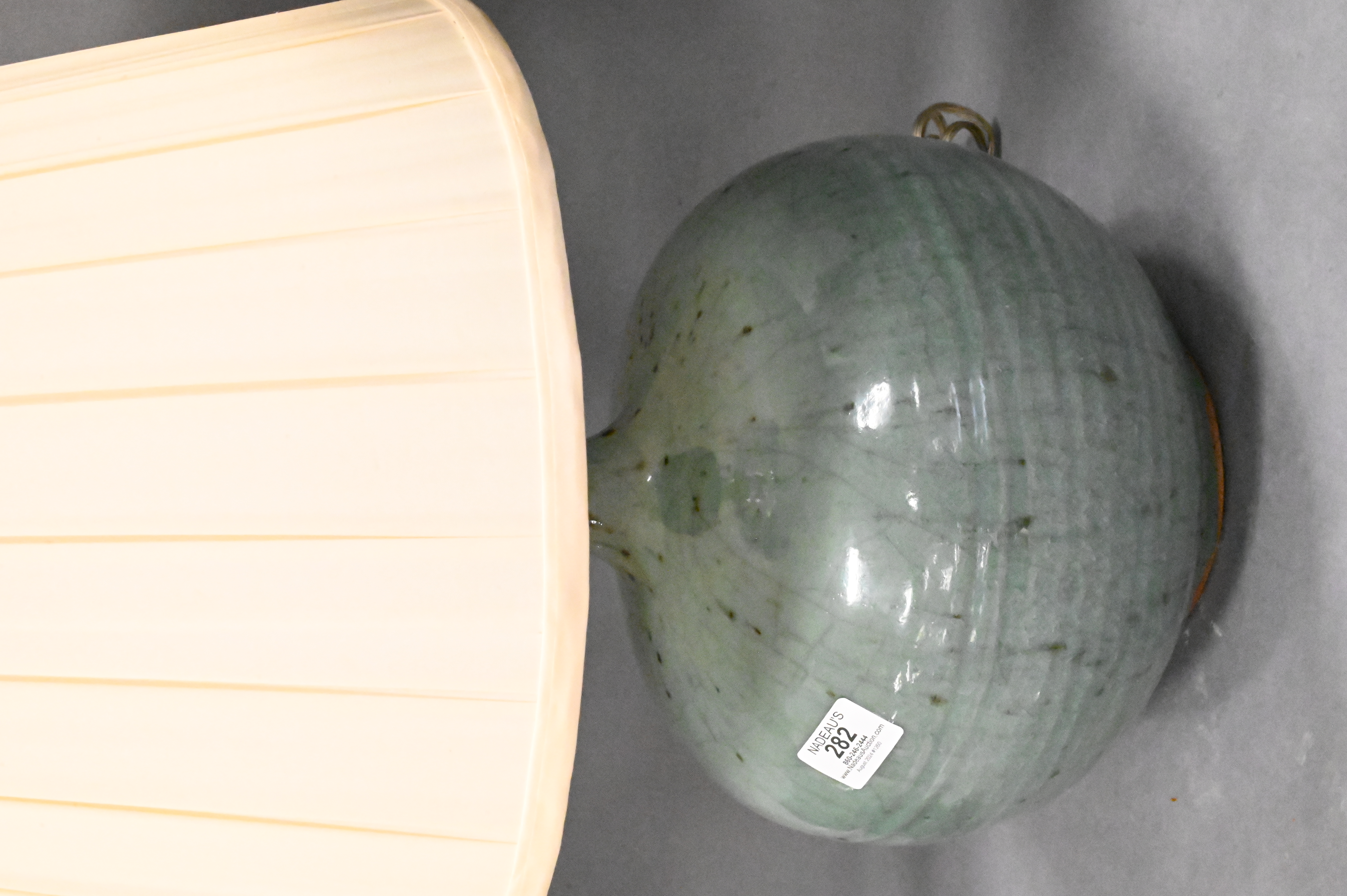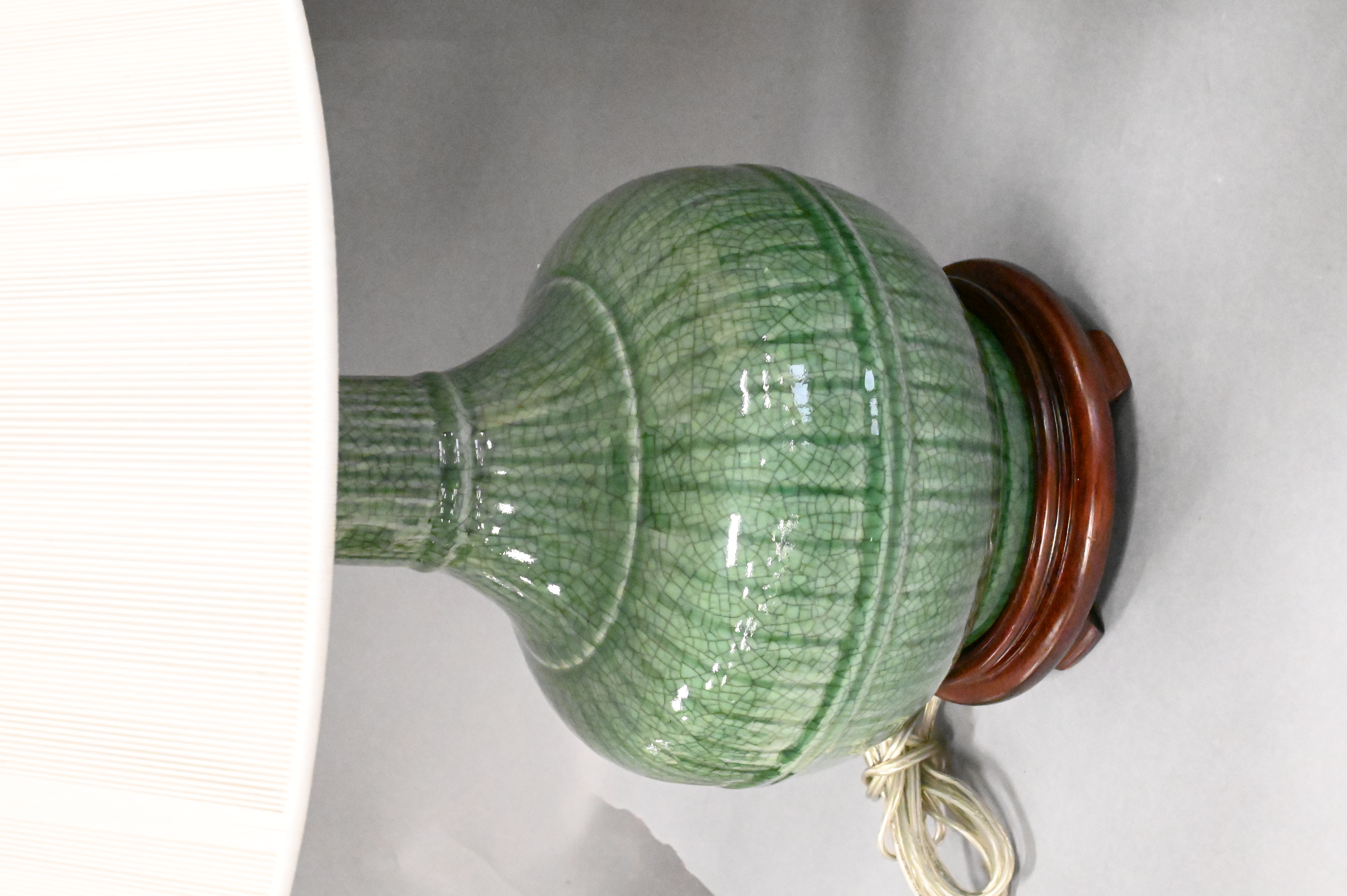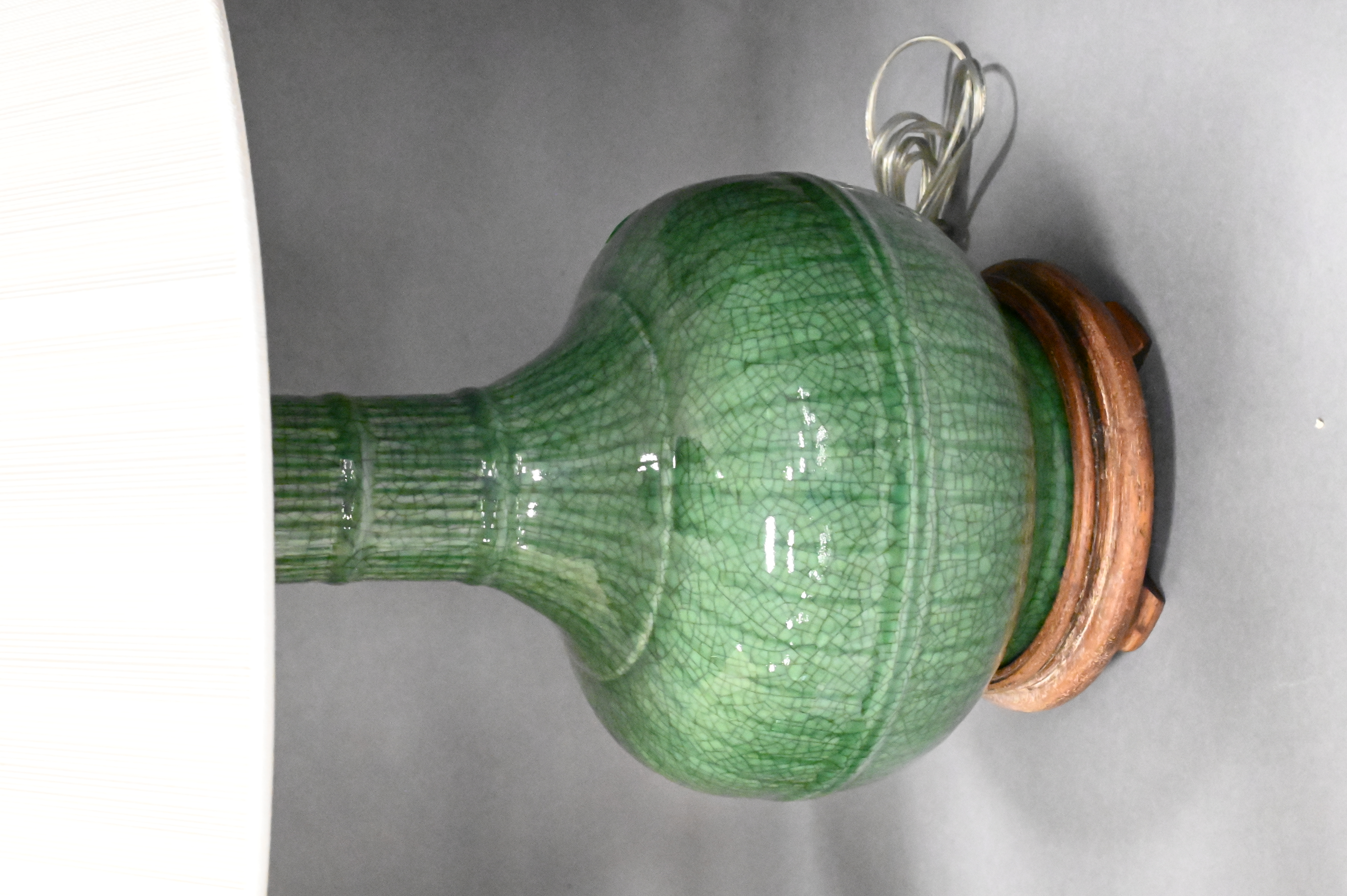 Lot 282: Three Green Crackle Glaze Ceramic Vases Now Mounted as Lamps