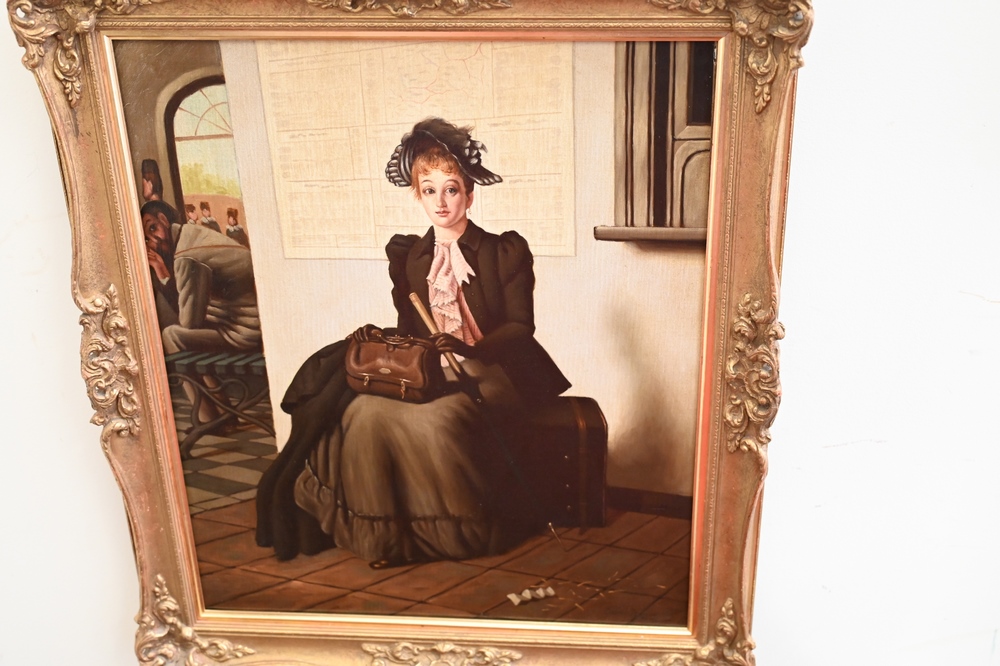 Three Piece Framed Group, to include a Train Station scene, oil on canvas, signed indistinctly lower right “Leopold…..Paris”; stil…