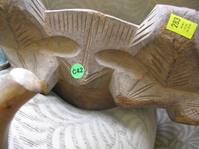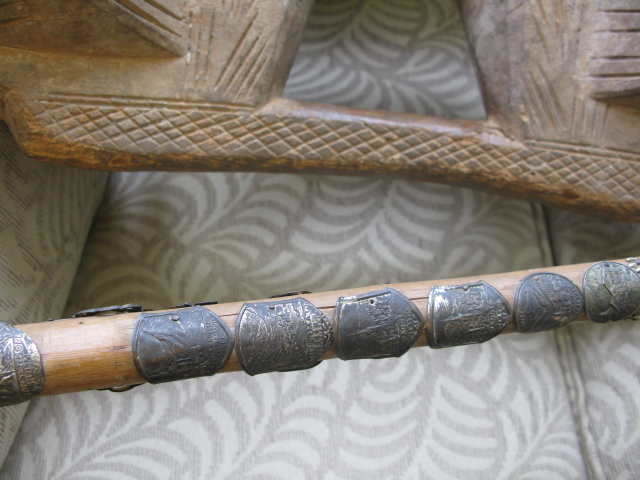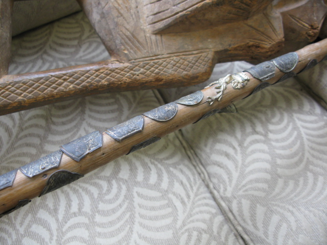 Carved wooden piece along with German cane with medals.