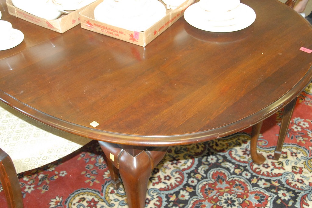 Cherry dining table with one leaf. Provenance: Estate of Judy Gengras McDonough of West Hartford, CT.