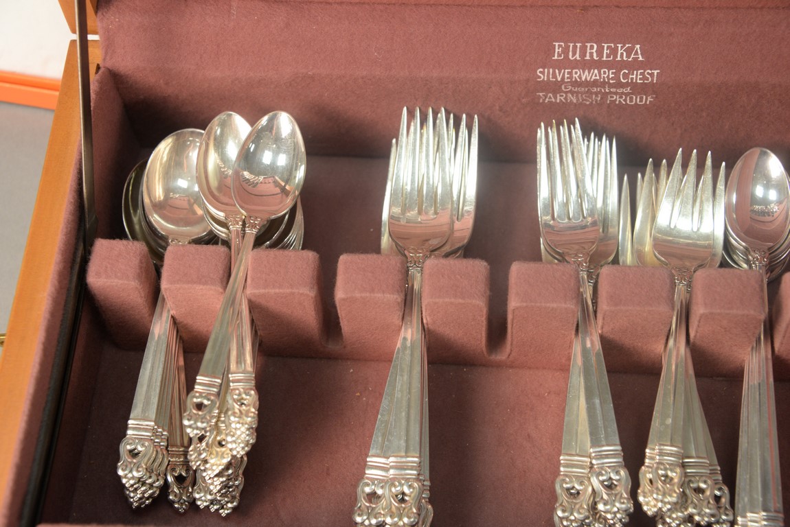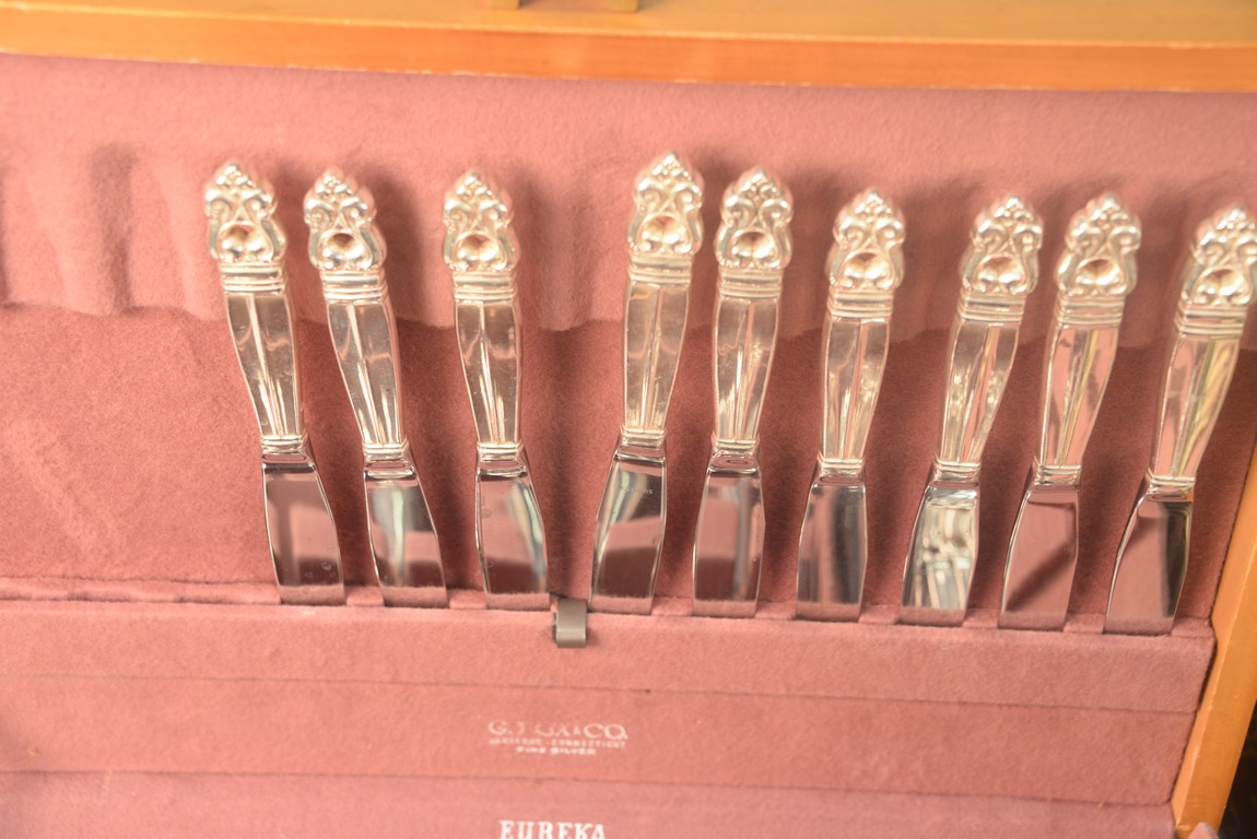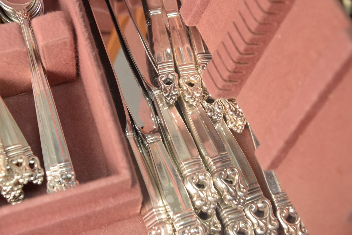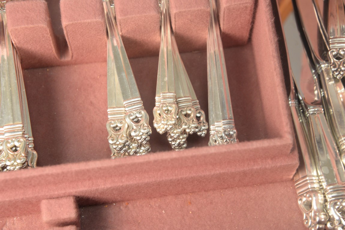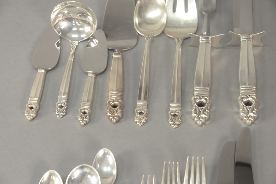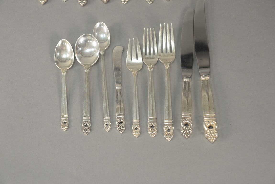 Lot 283: International Royal Danish sterling silver flatware set, 107 pieces, setting for ten including 10 dinner knives, 10 lunch knives, 10…