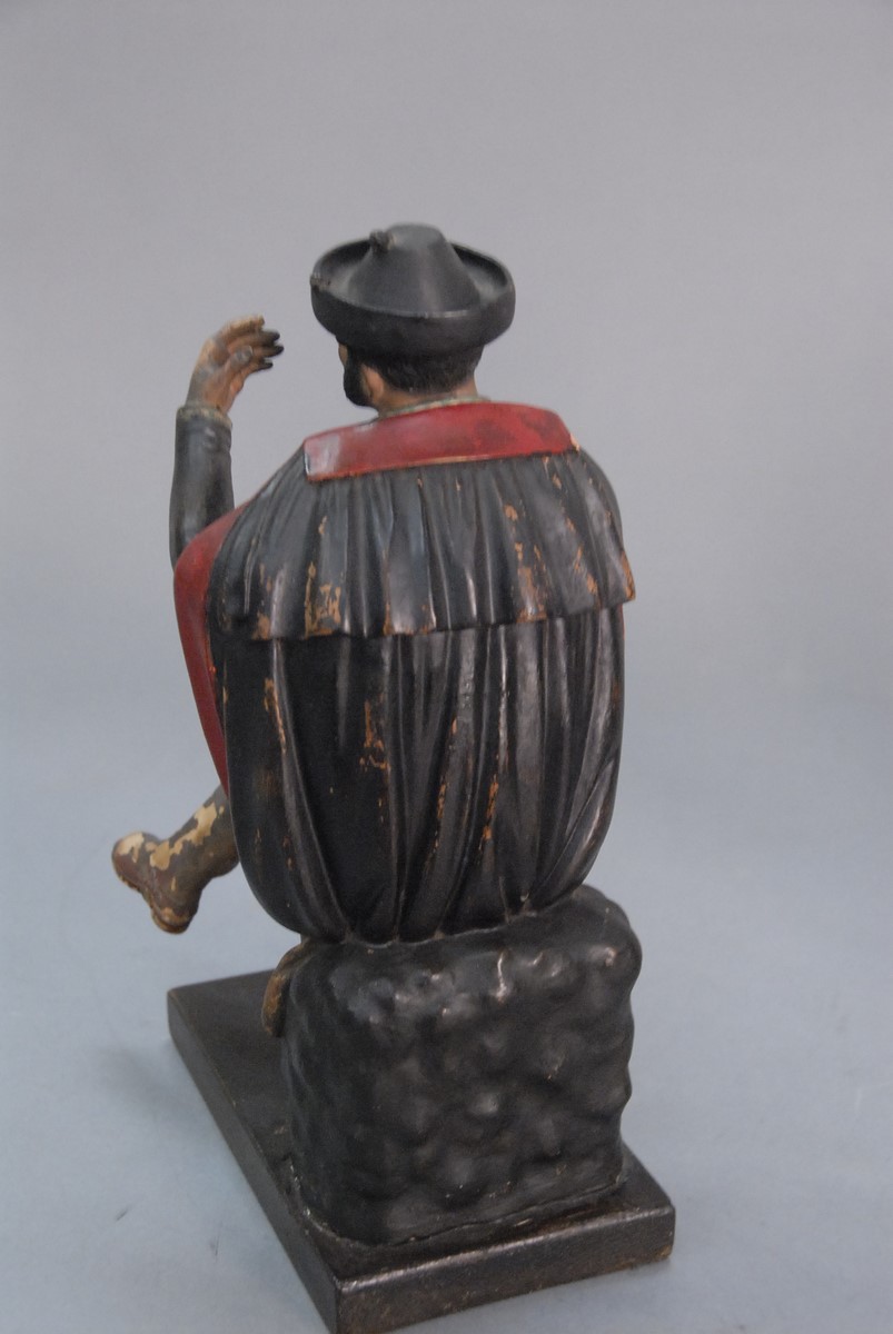 Jose Cubera pair of Spanish polychrome earthenware figures having label Jose Cubera pasaje de Heredia, Malagaa minor paint loss. ht. 10 1/2 in. & ht. 11 1/2 in. Provenance: Property from a Private Collection Sold for the Benefit of the Virginia Historical Society.