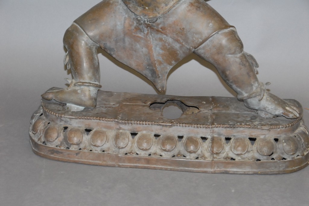 Large bronze Southeast Asian figure of Buddha standing on lotus base, probably Thai or Tibetan, ht. 37, wd. 28.