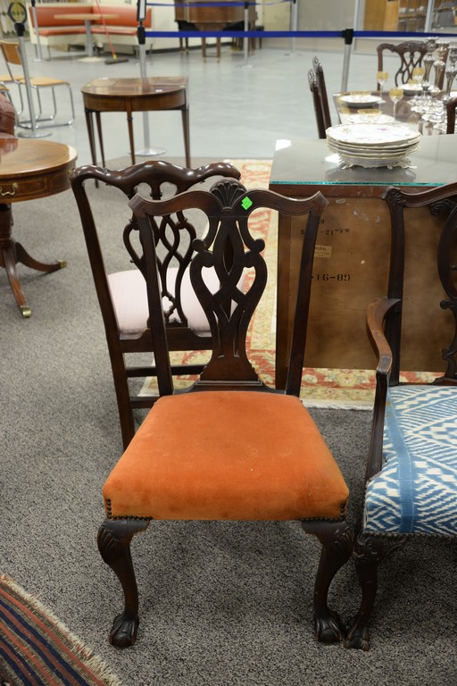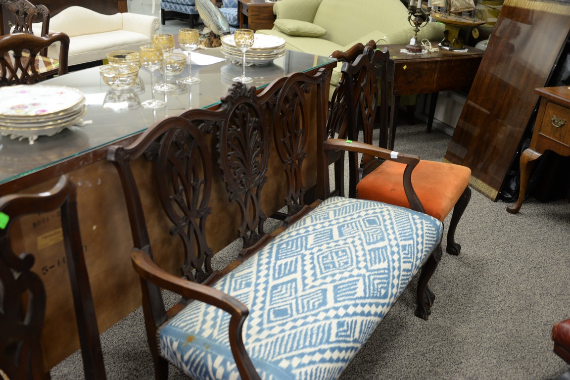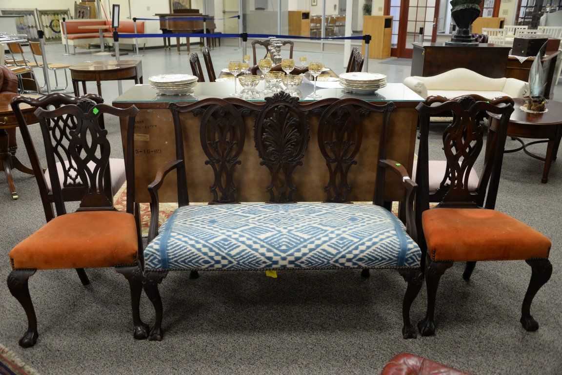 Lot 283: Three piece lot including mahogany two seat settee and pair of Chippendale style side chairs. settee: lg. 45in.