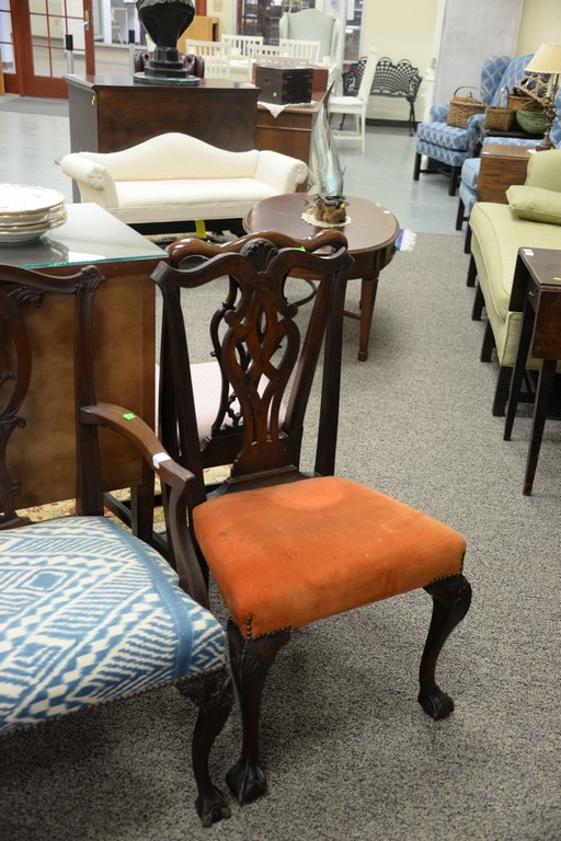 Three piece lot including mahogany two seat settee and pair of Chippendale style side chairs. settee: lg. 45in.