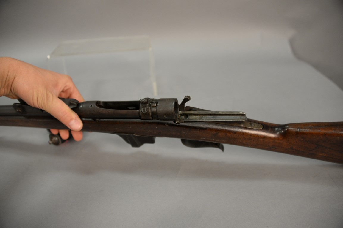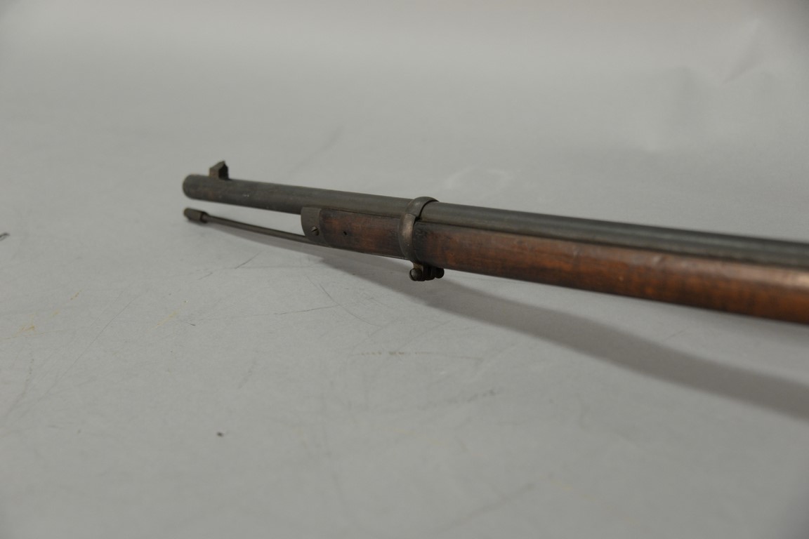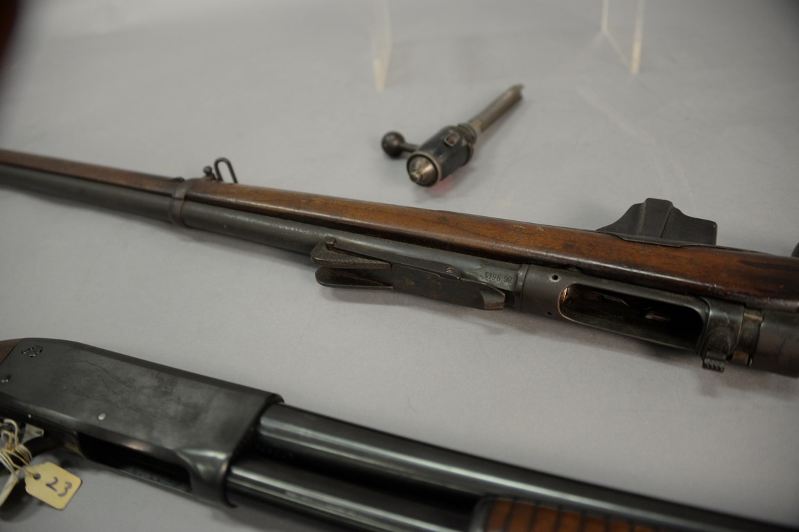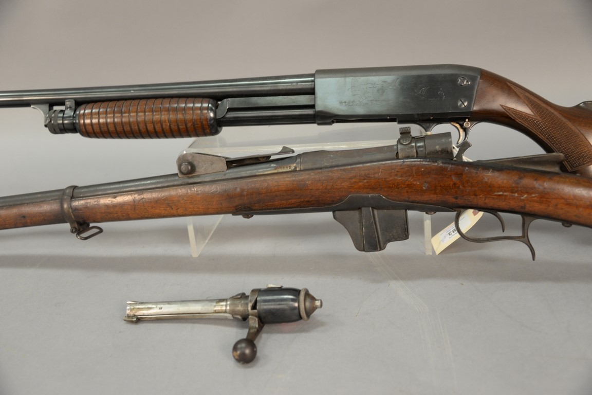 Two piece lot to include Ithaca model 37 16ga. pump shotgun, 2 3/4 chamber with modified choke 27 barrel with bright clean bone and poly choke sn200638 460 and Vetterli bolt action rifle 33 barrel 1882 vintage, wood is sound, a good parts gun snBG9645.