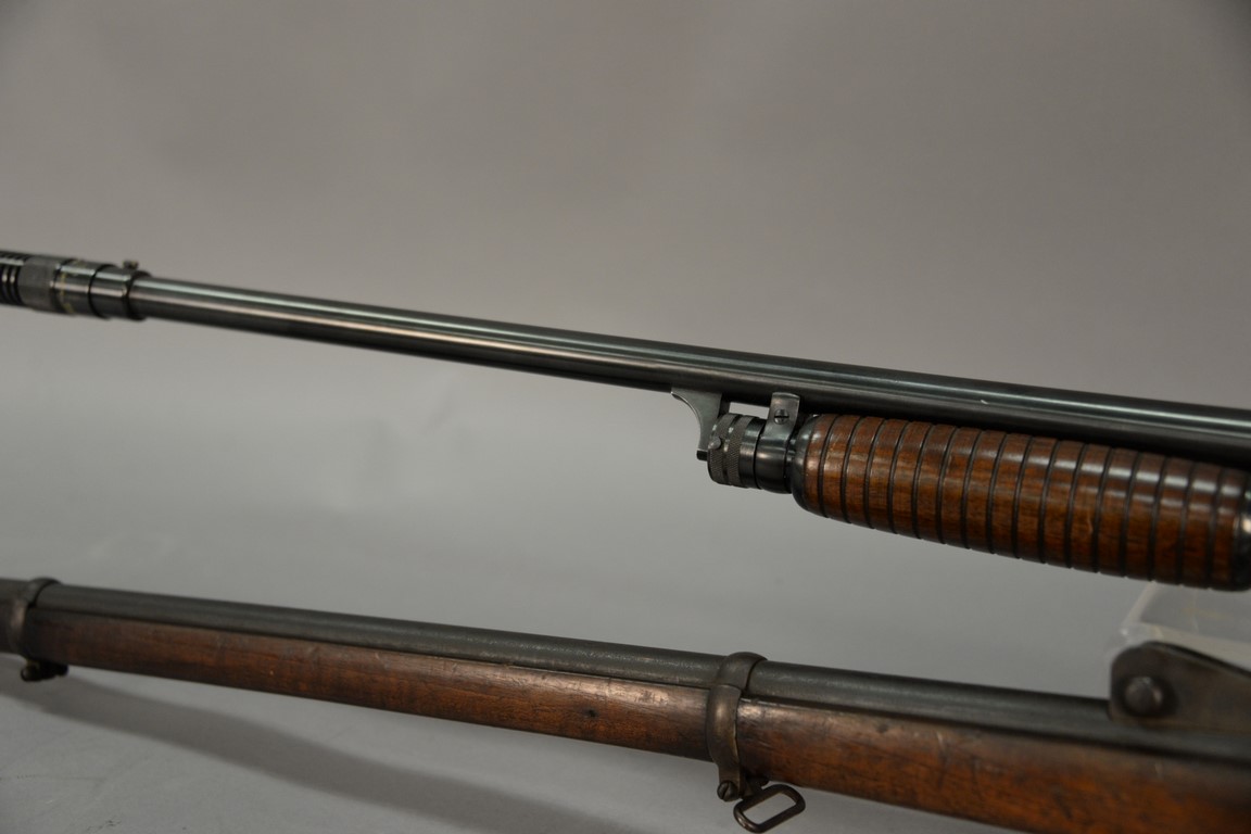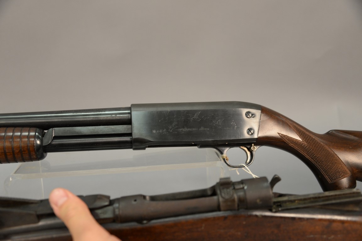 Lot 283: Two piece lot to include Ithaca model 37 16ga. pump shotgun, 2 3/4 chamber with modified choke 27 barrel with bright clean bone an…