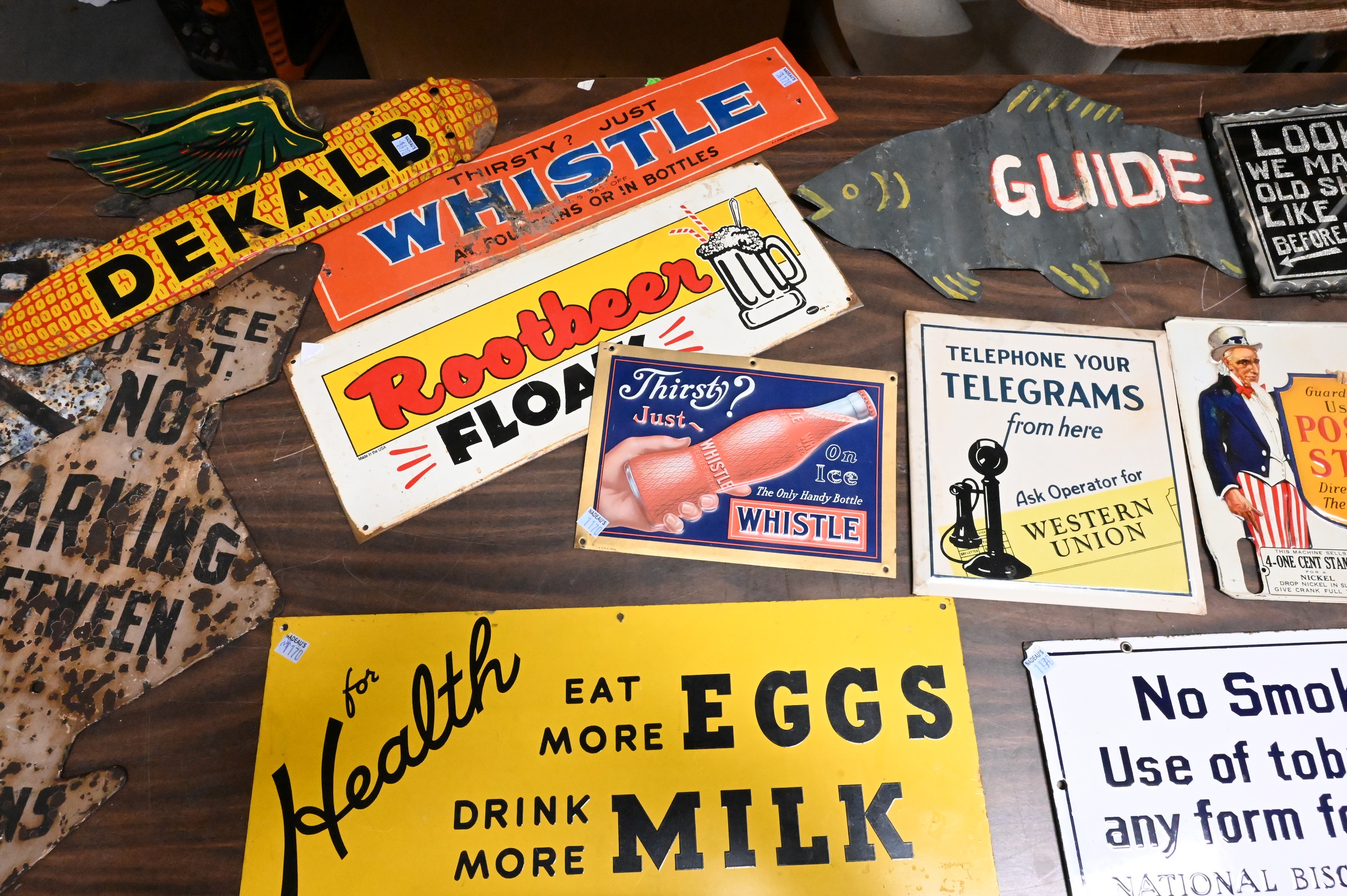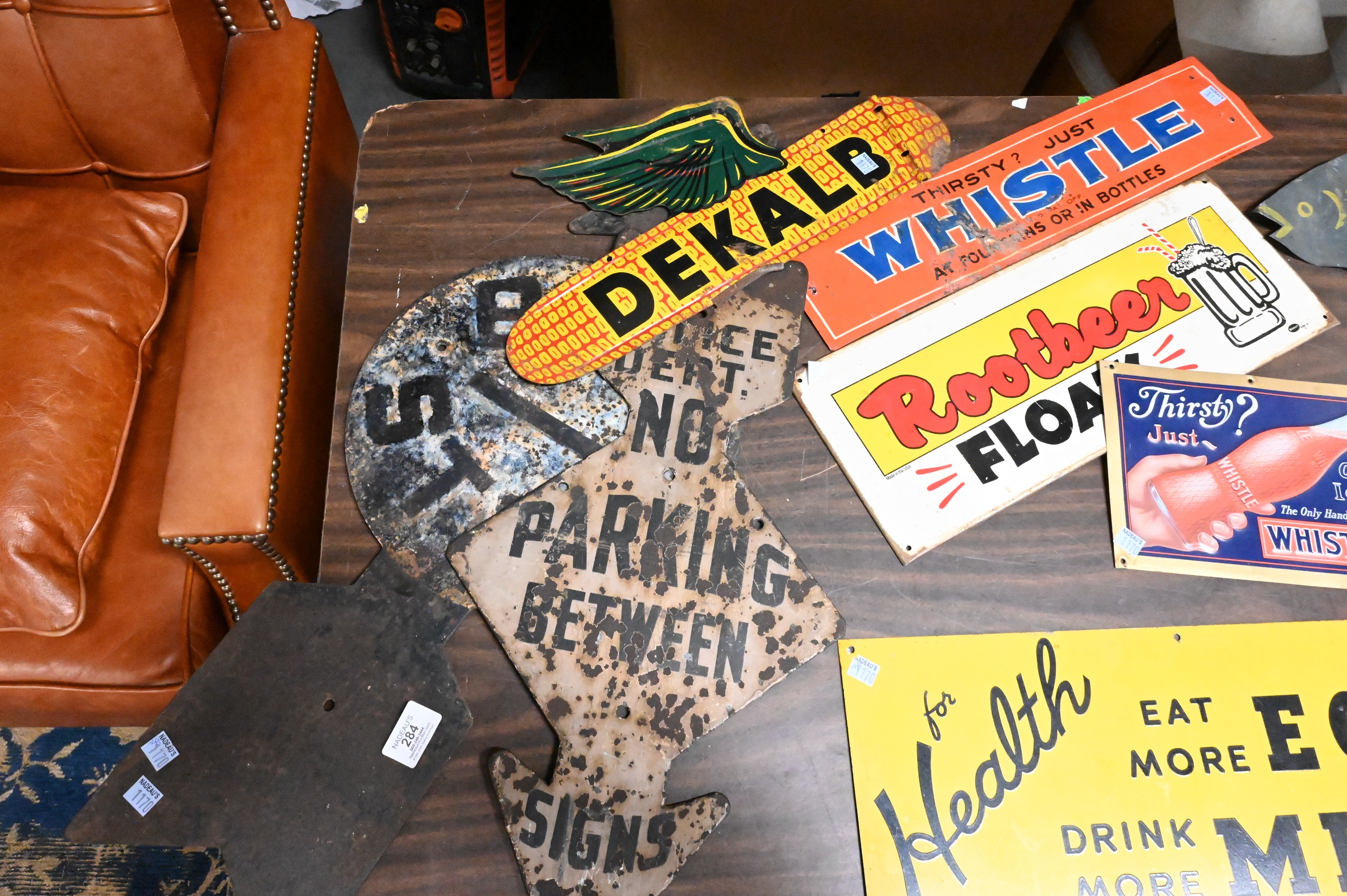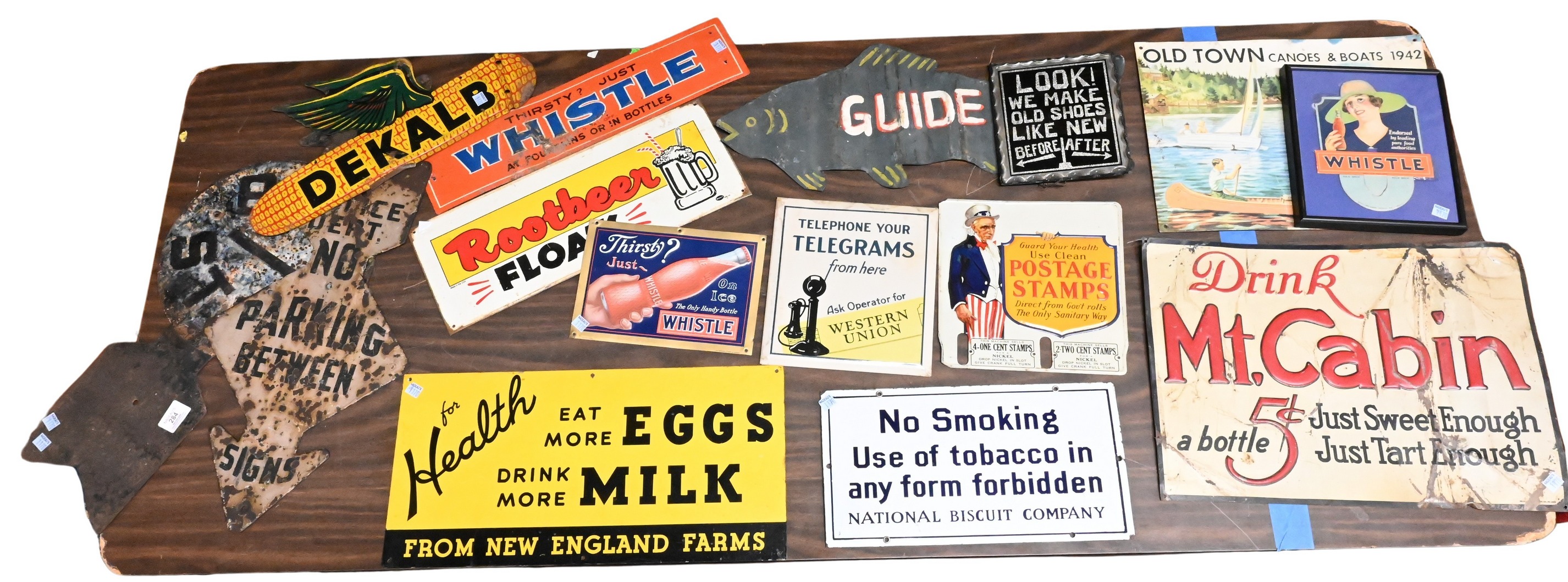 Lot 284: 11 Vintage Signs of in Various Designs