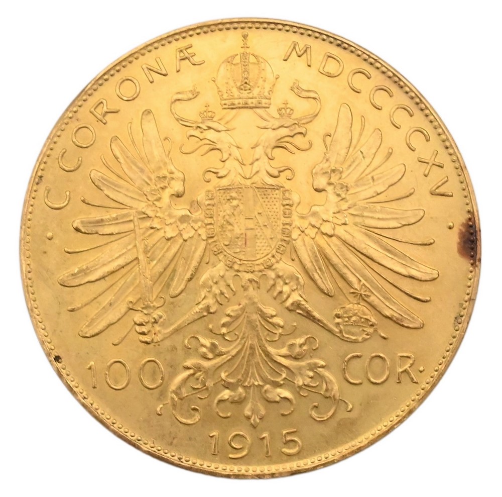 1915 100 Corona Austrian Gold Coins, marked C Corona Francois, .100 cor., 1.090 t.oz