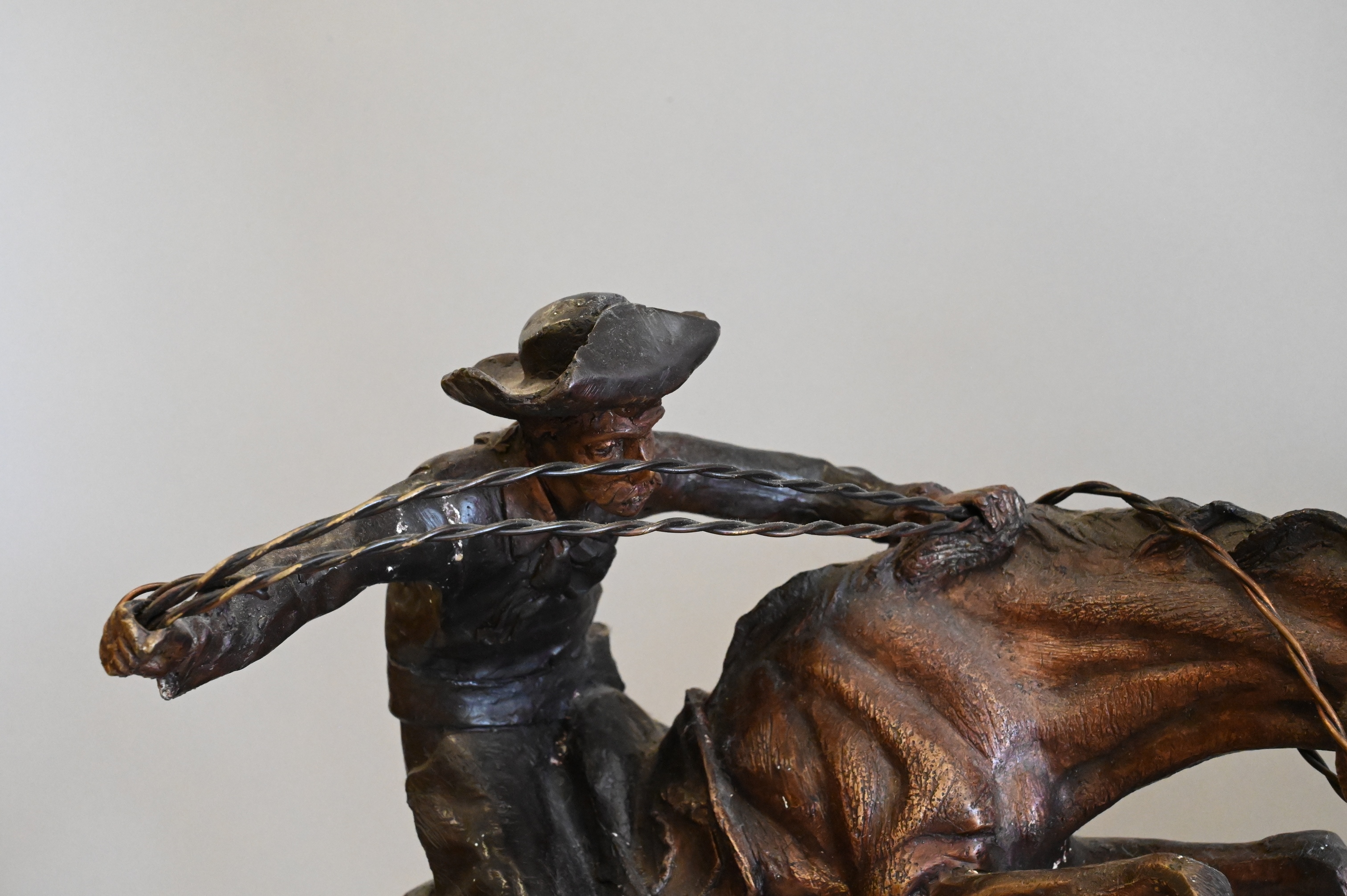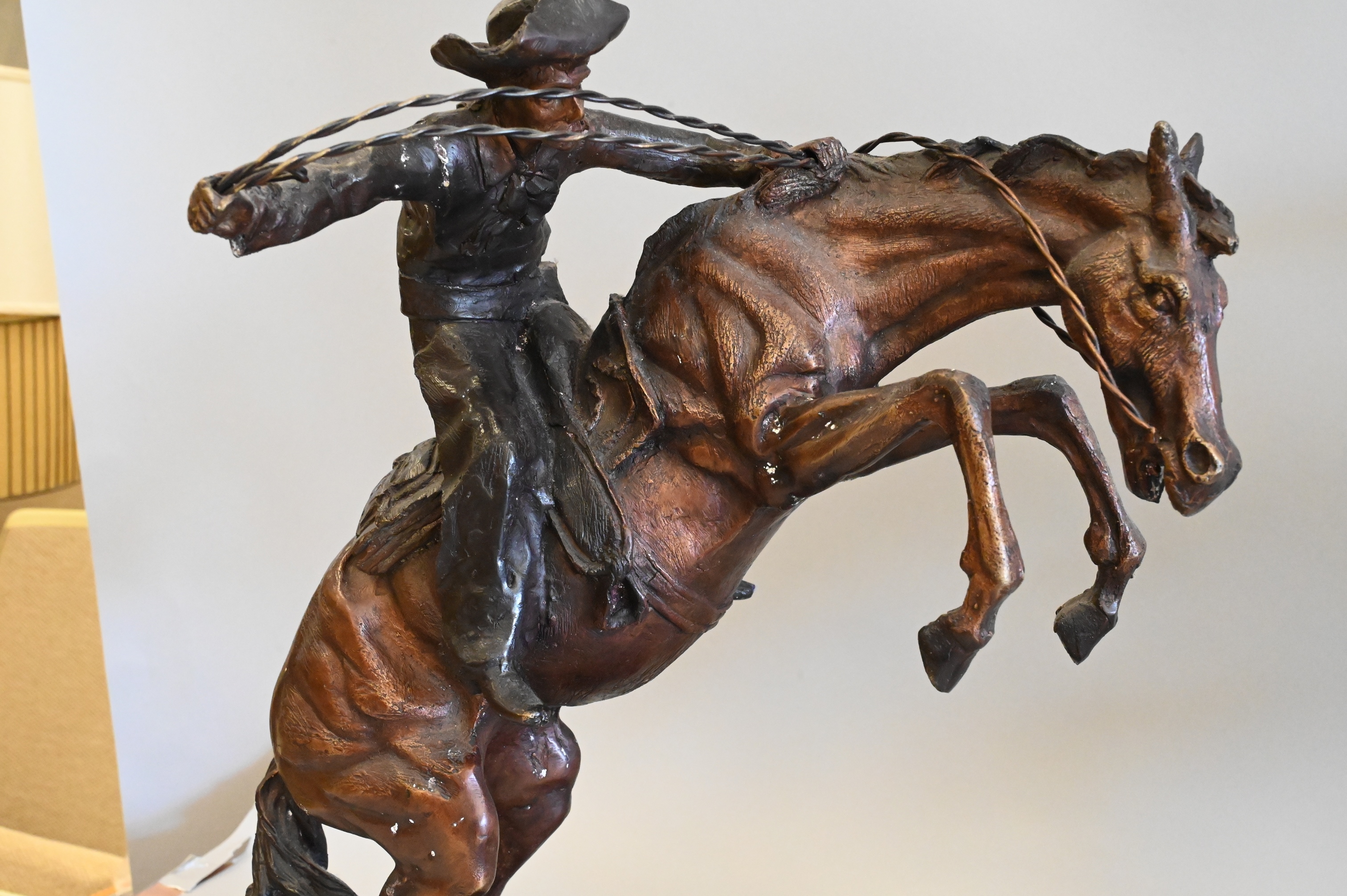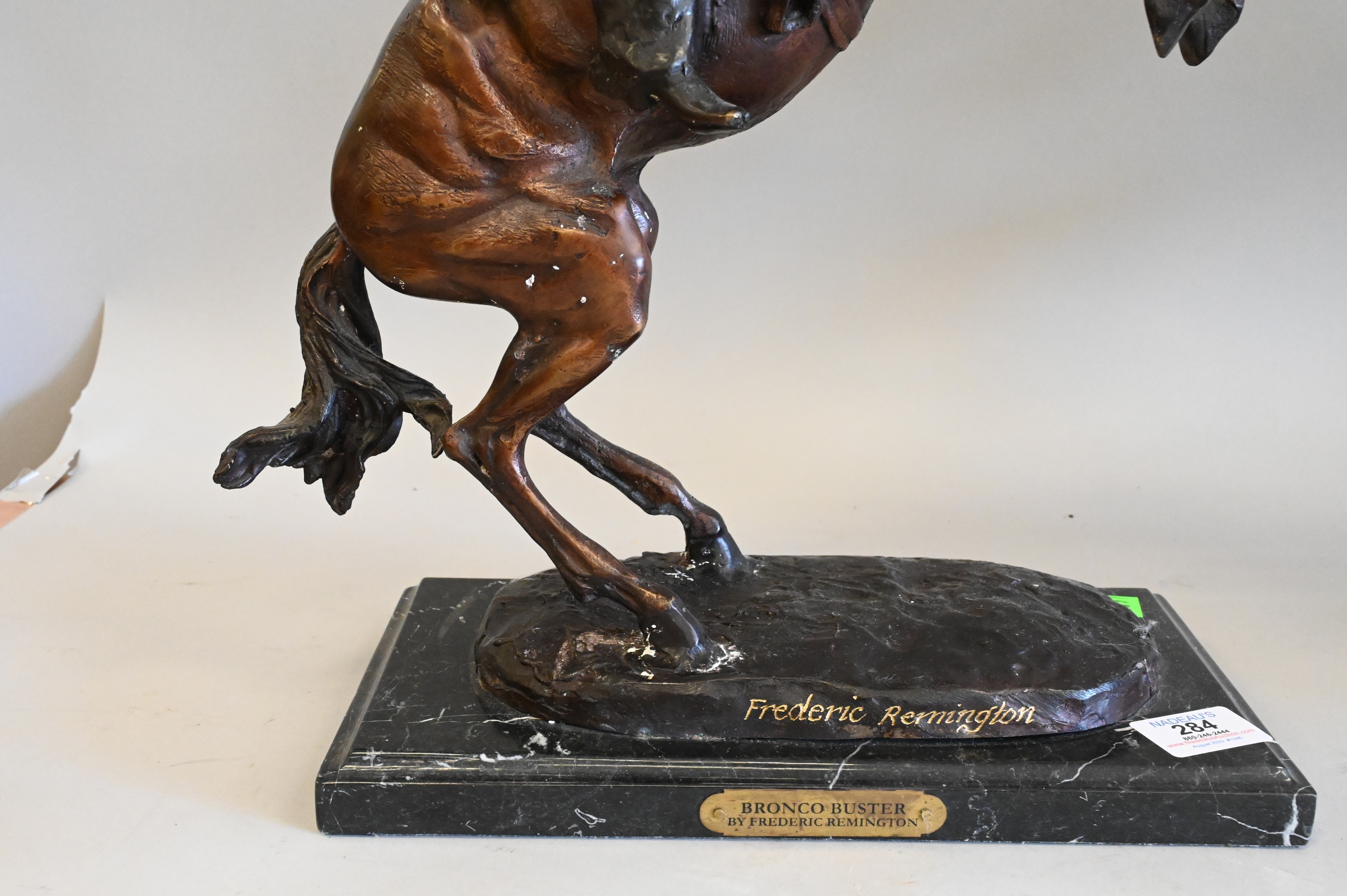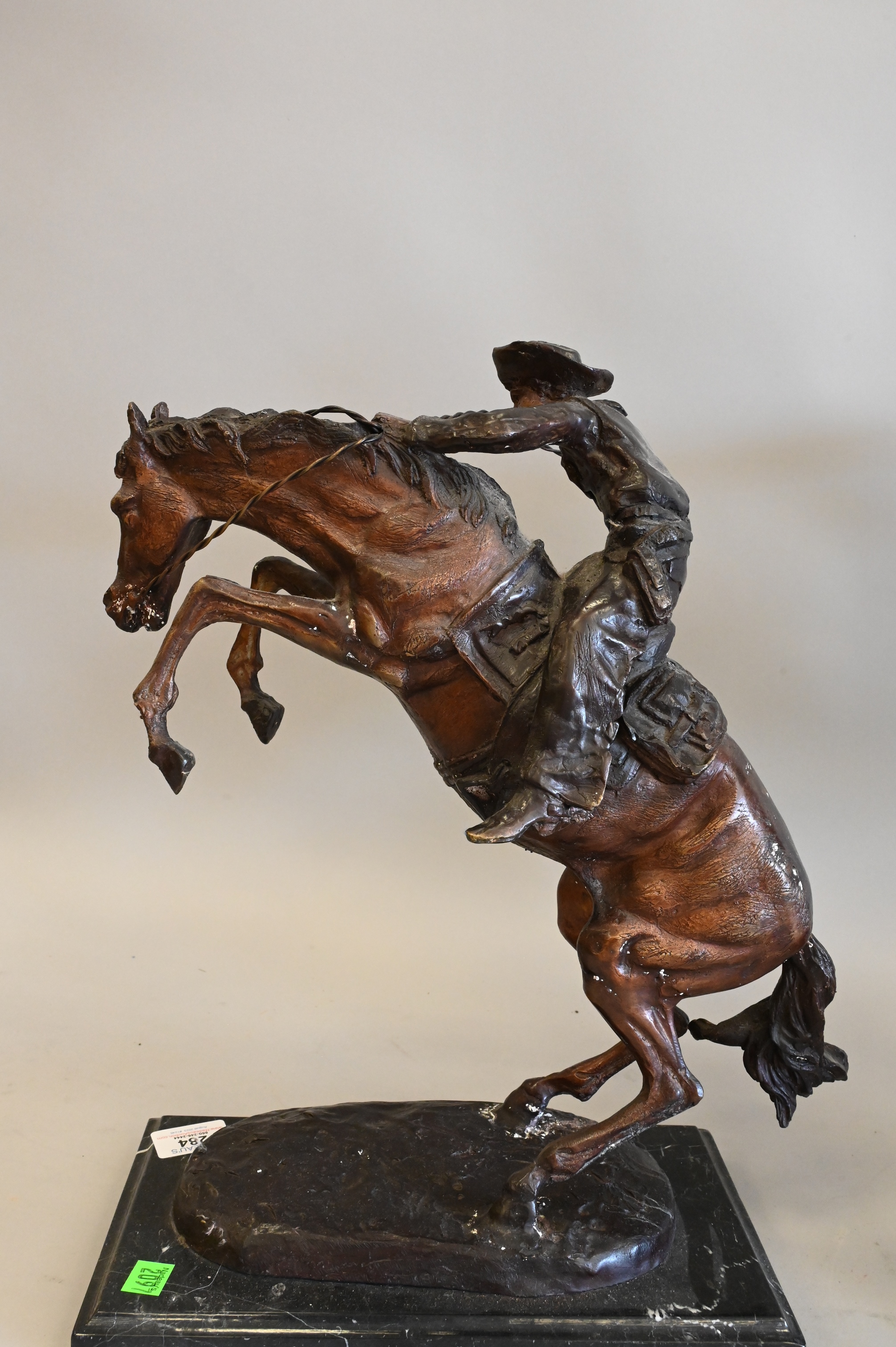 After Remington Cast Bronze “Bronco Buster” signed “Frederic Remington” along with brass label height 17 inches.