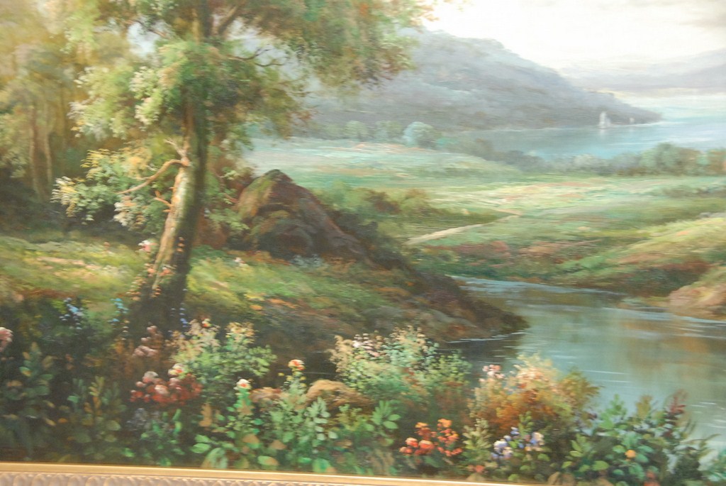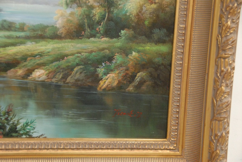 Decorative oil on canvas painting in gold frame, 24 x 36.