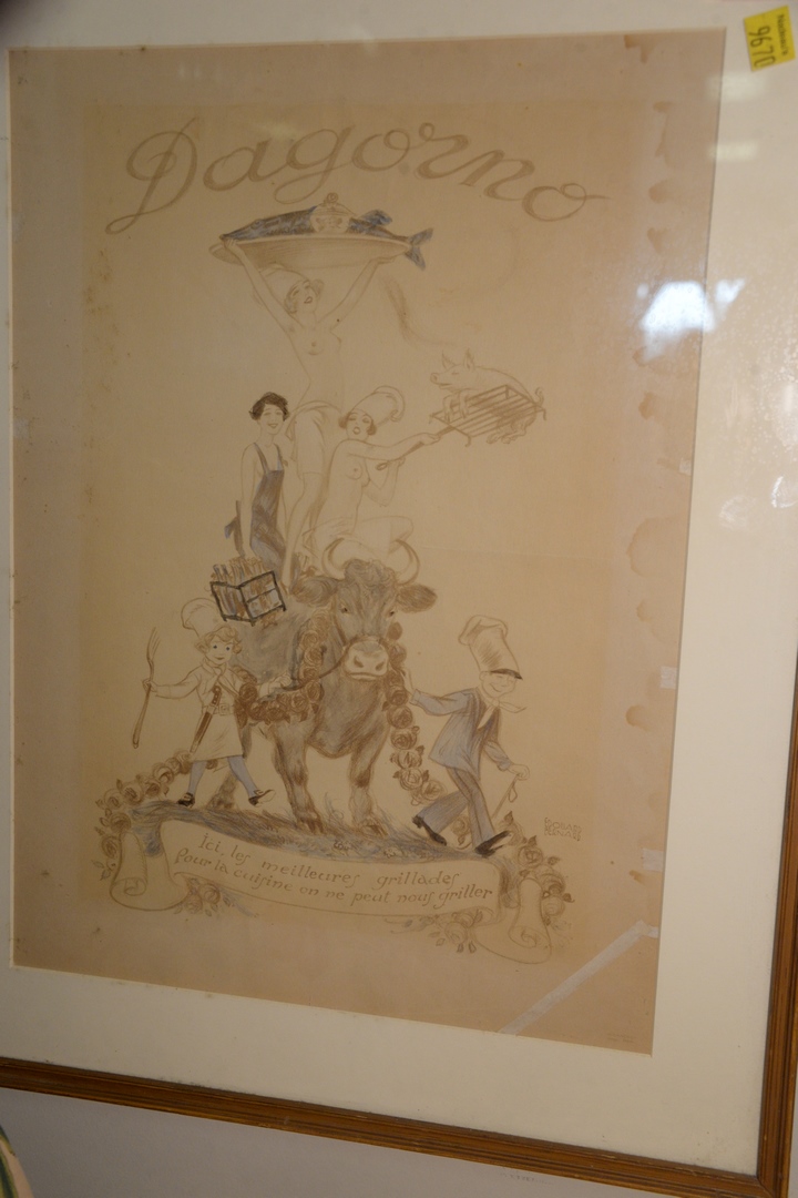 Lot 284: Edouard Bernard framed original handwritten French men for Dagorno Marche de La Villette two sided sight size: 17 x 12 Provenance:…