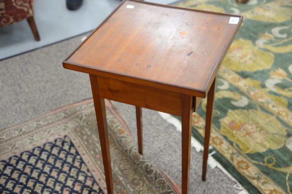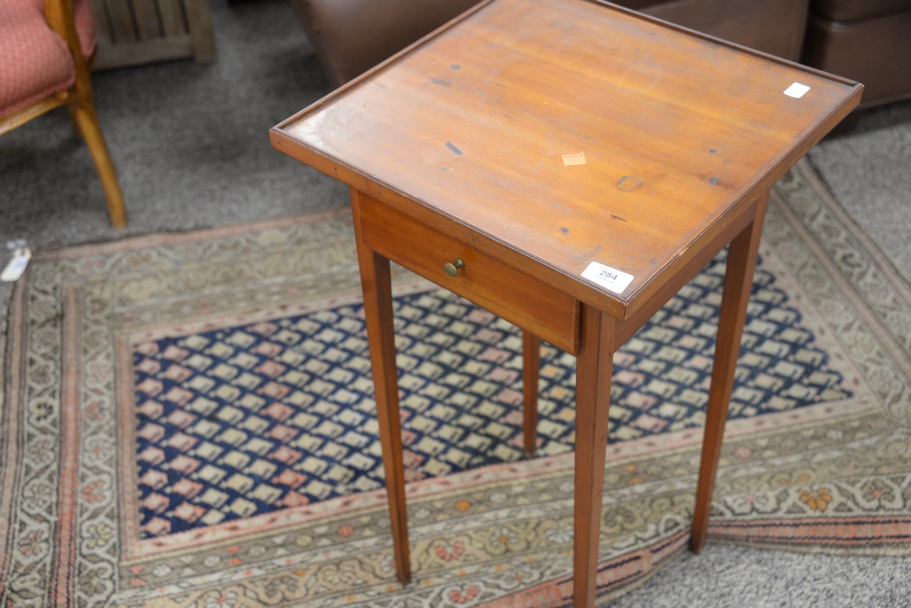 Federal One Drawer Stand, on tapered legs, height 28 inches, top 16″ x 16″.
