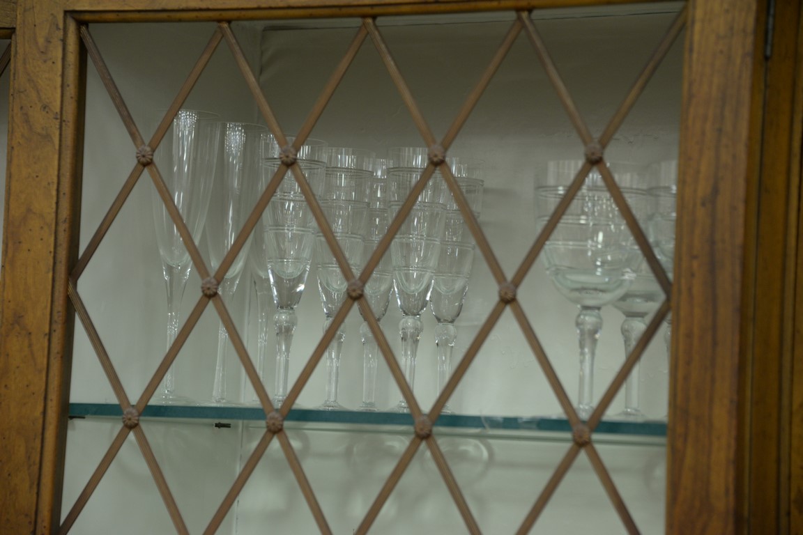 Lot 284: Fifty-two piece lot to include 23 piece set of red and white wine crystal stems 11 white and 12 red, and a set of ten Tiffany & Co…