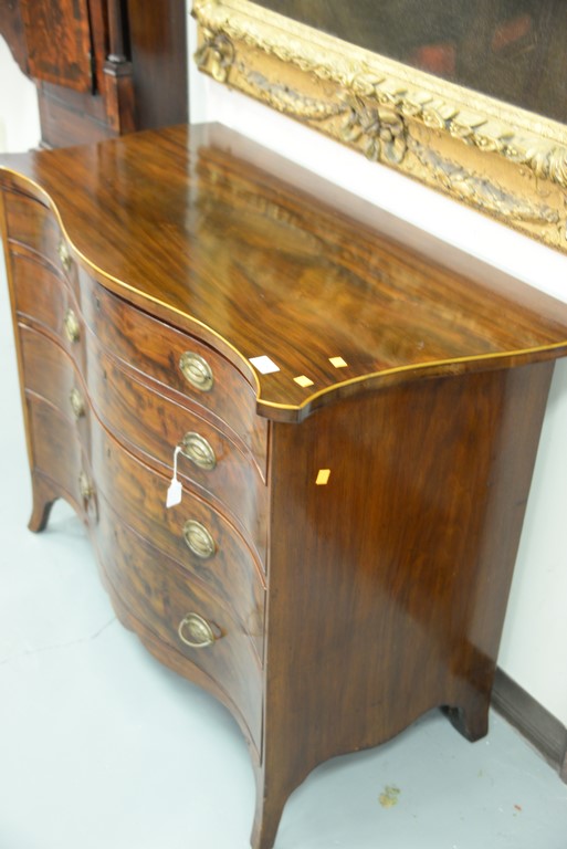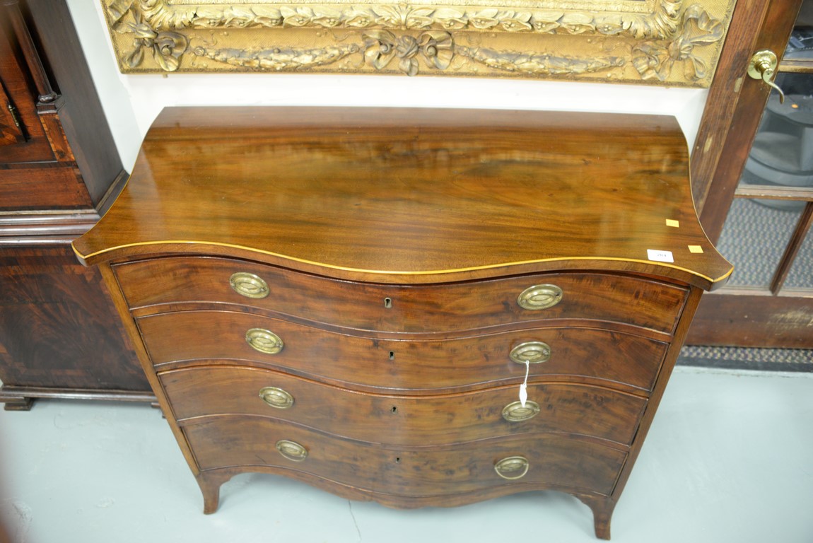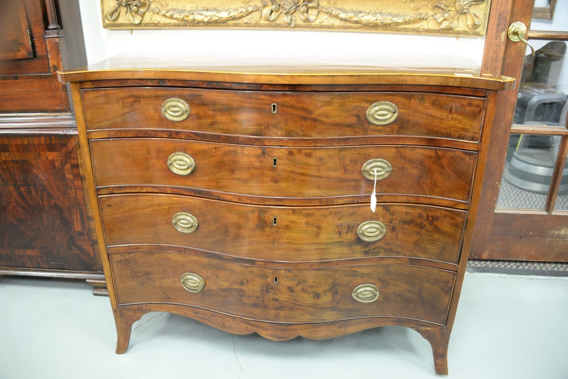Lot 284: George III mahogany serpentine chest of four drawers set on French feet, circa 1790-1810. ht. 34in. wd. 45in. dp. 22in. Pro…