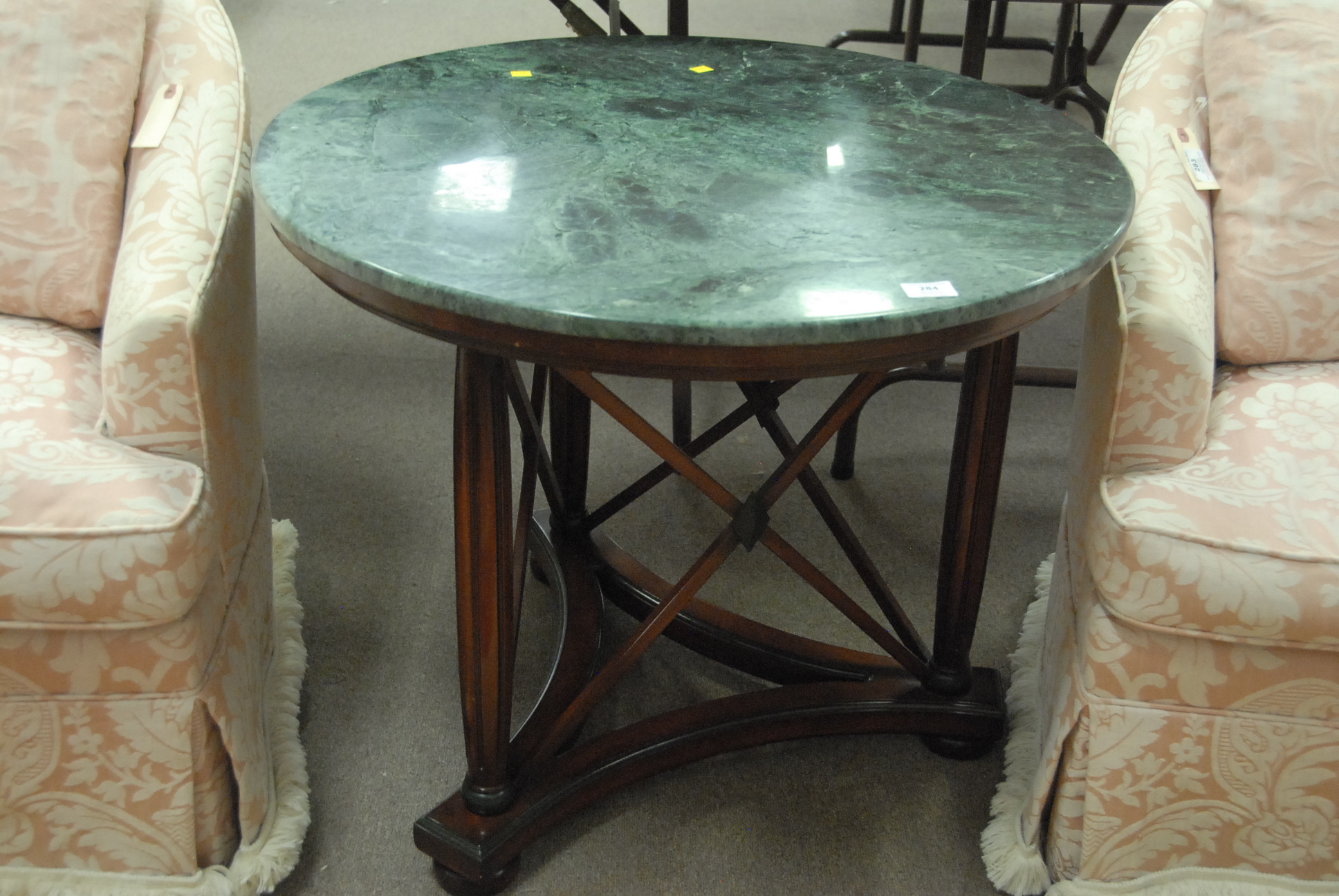 Round marble top table, ht. 26 in. dia. 31 in.