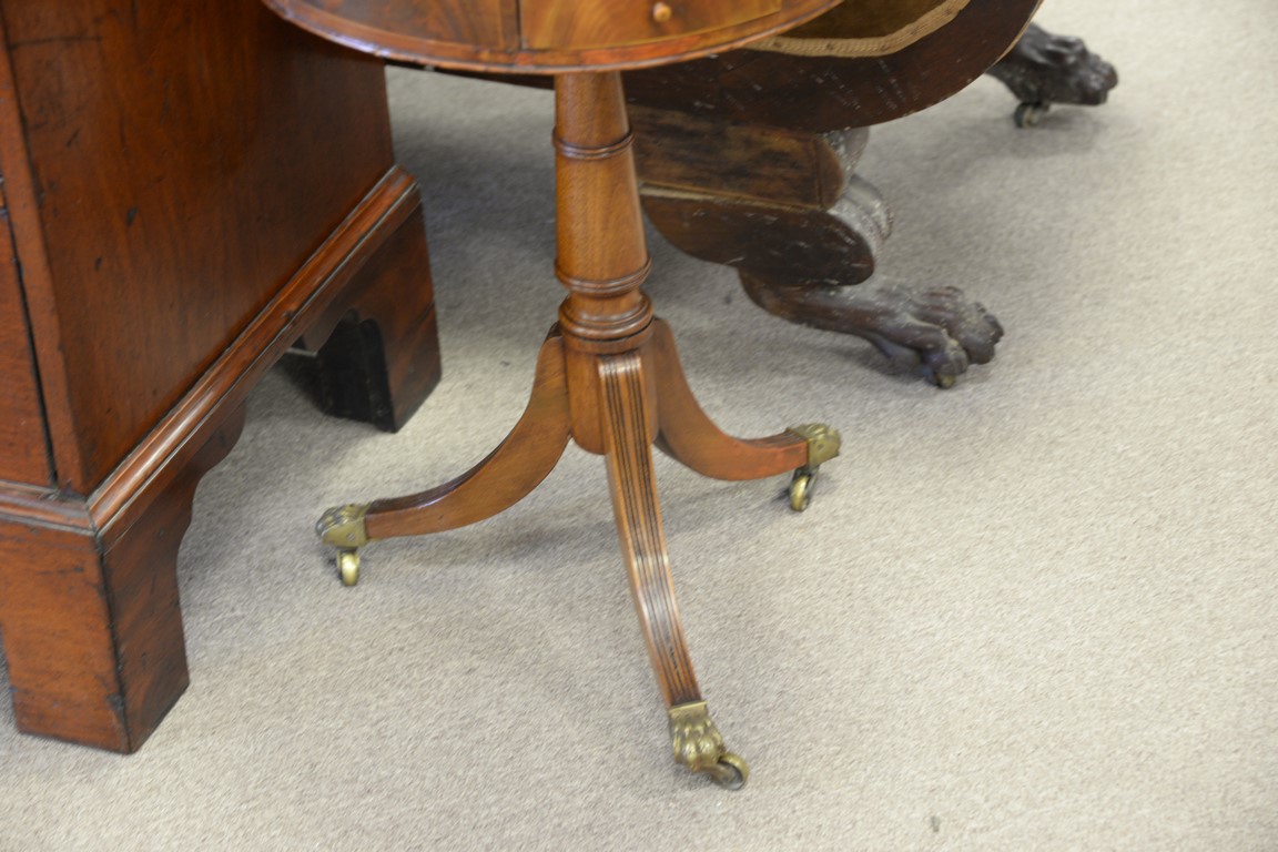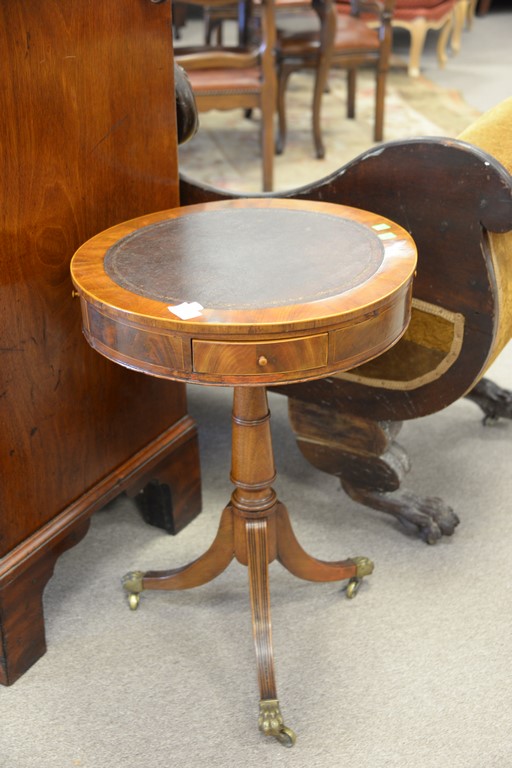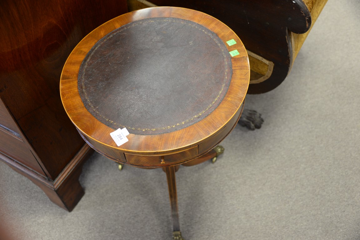 Lot 284: Two piece lot including George III diminutive drum table with leather top and four drawers on pedestal base ht. 26in., dia. 18in. …