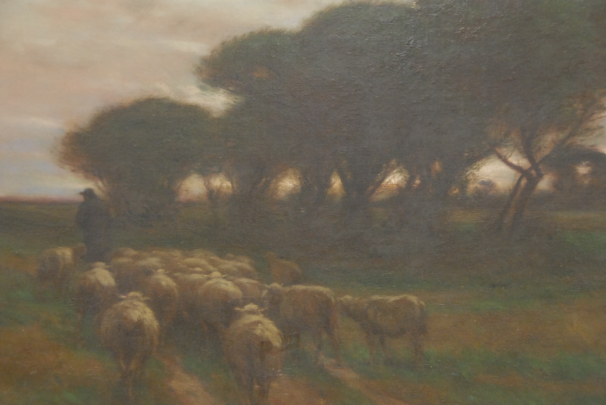 Lot 285: Carleton Wiggins 1848-1932 SHEPARD AND HIS FLOCK oil on canvas signed lower left Carleton Wiggins 24 x 36