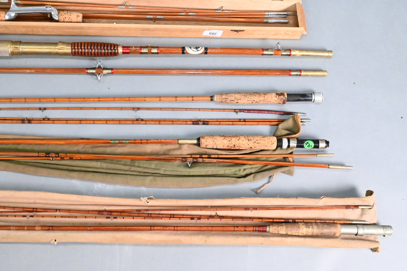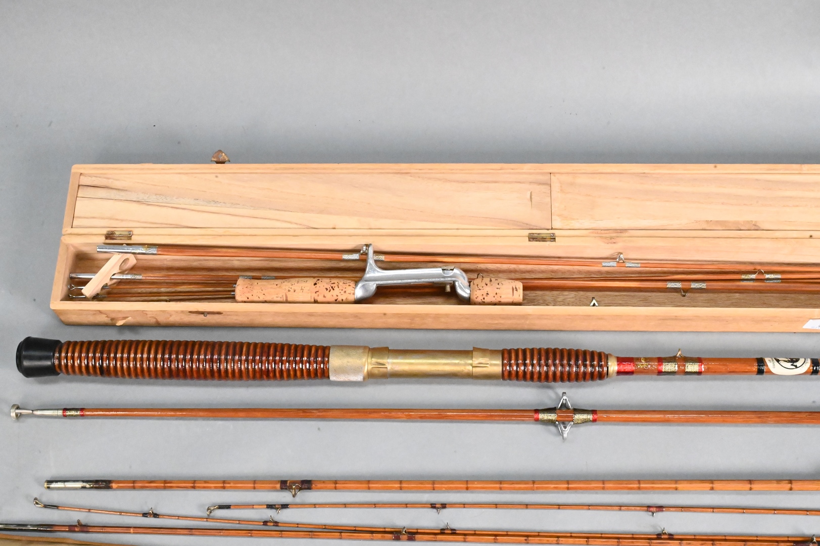 Four Bamboo Fly Rods, to include one Hardy three point 3/4 oz., having two tips one short at 8 inches, along with another being slightly short. Provenance: Estate of Peter Tillou, Litchfield, Connecticut.
