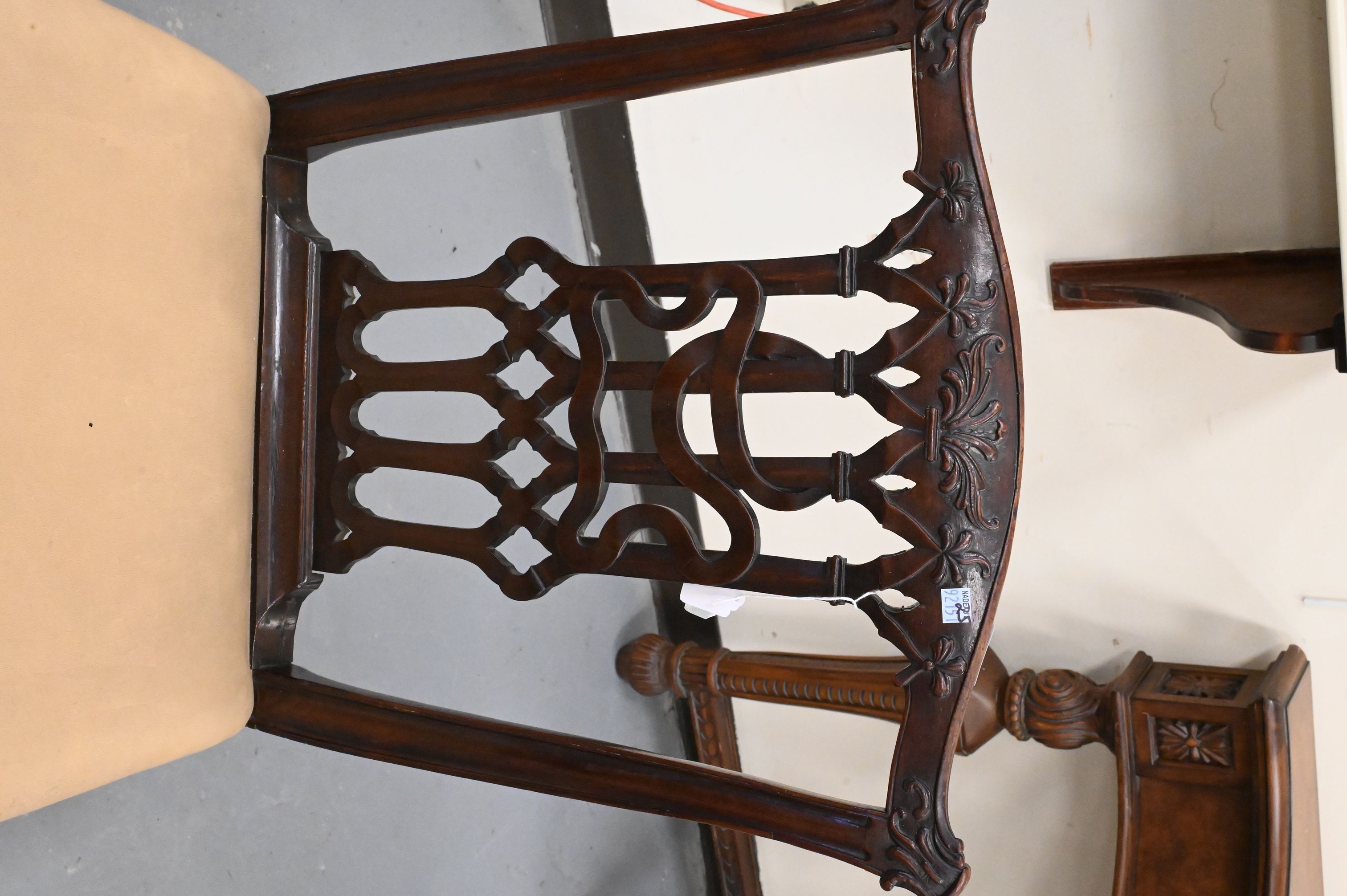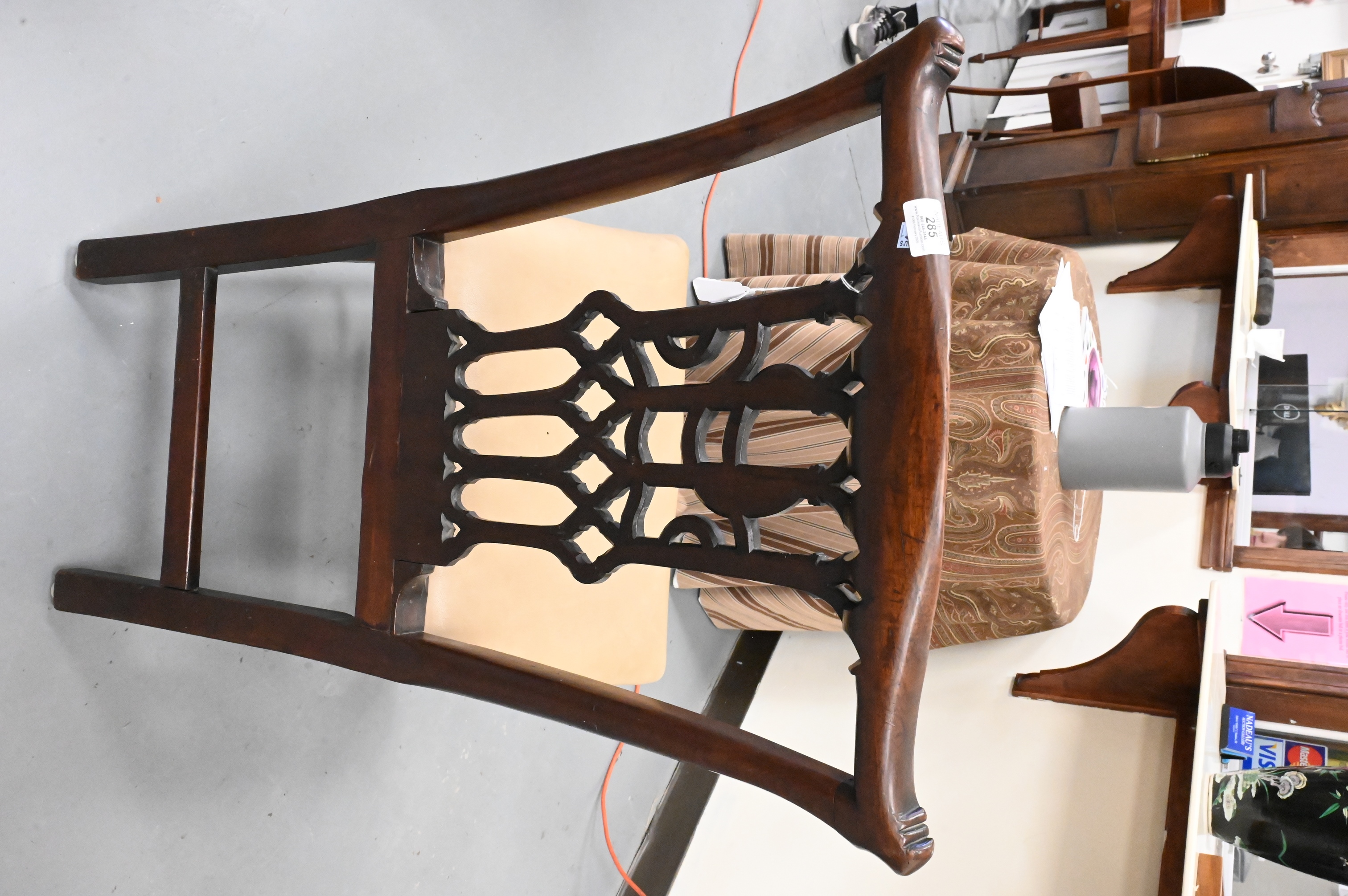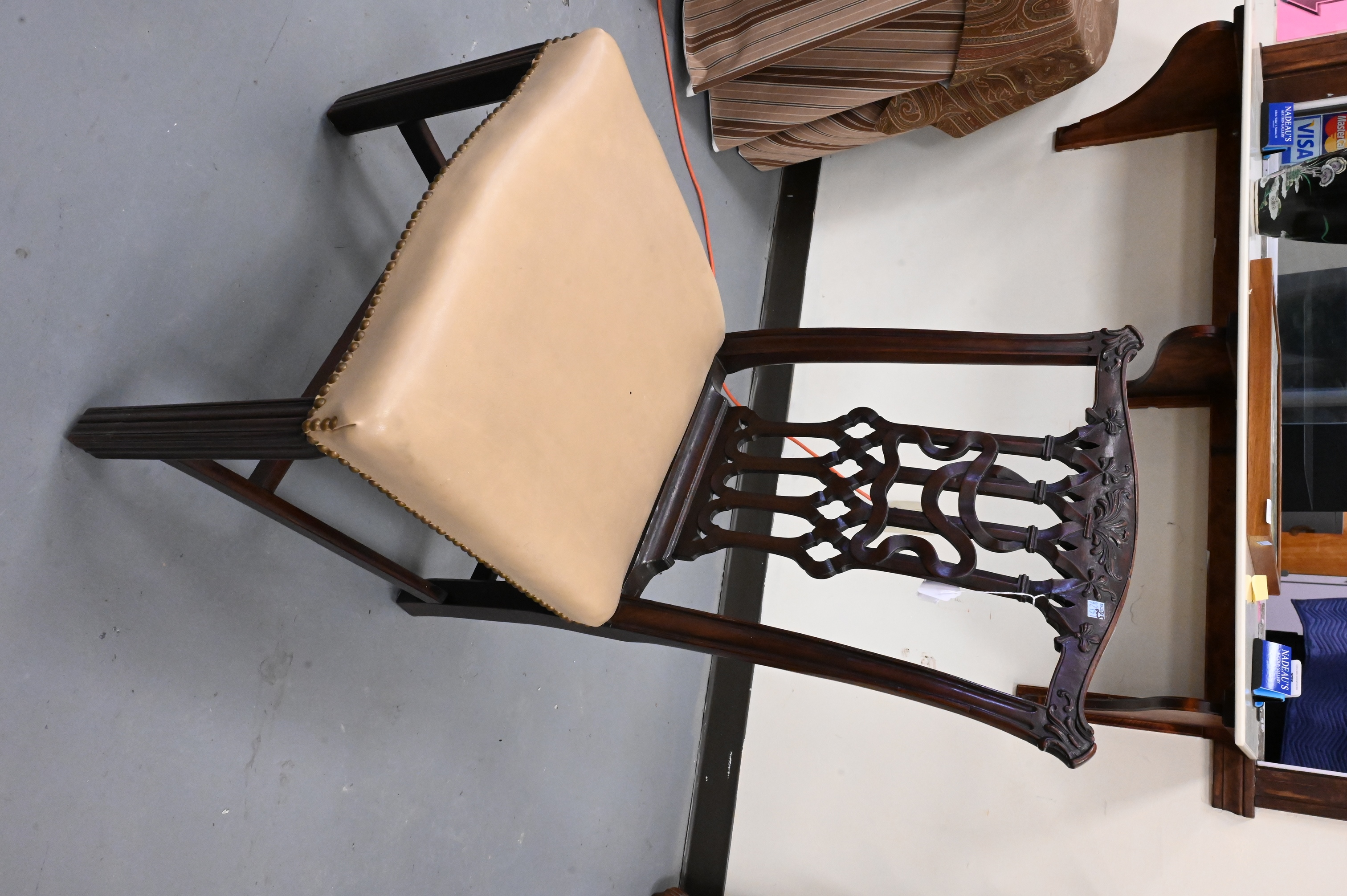 Lot 285: George III Finely Carved Ribbon Motif Mahogany Side Chair having Tan Leather Seat