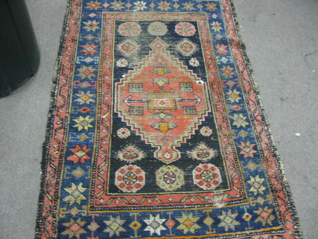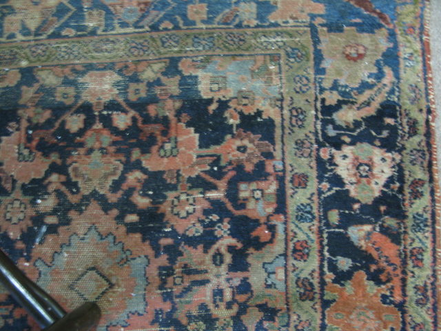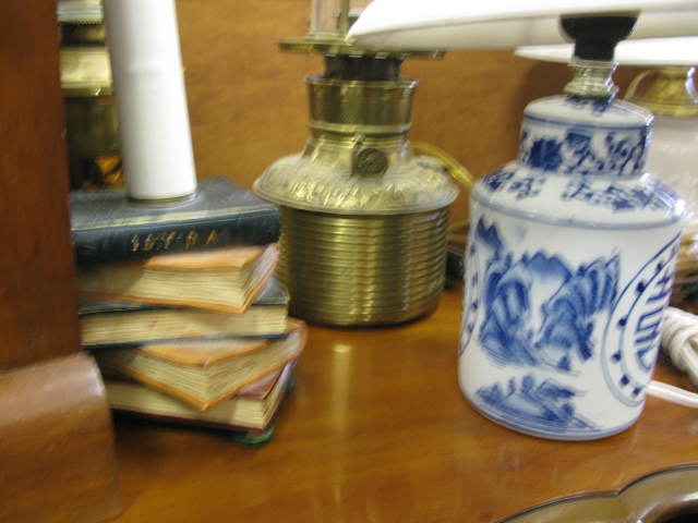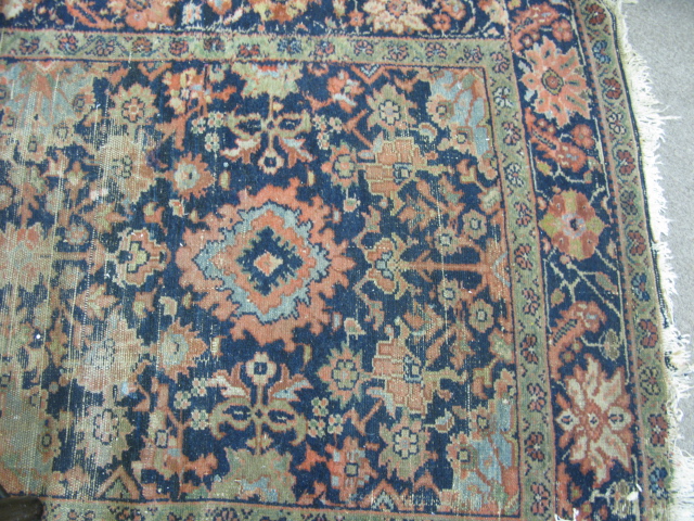 Group lot to include 7 lamps, a clock, 2 Hamadan Oriental rugs, worn.