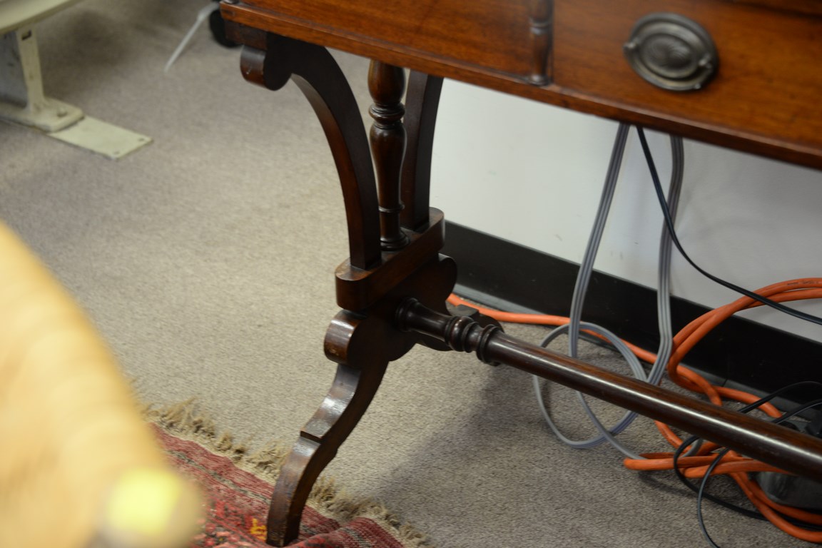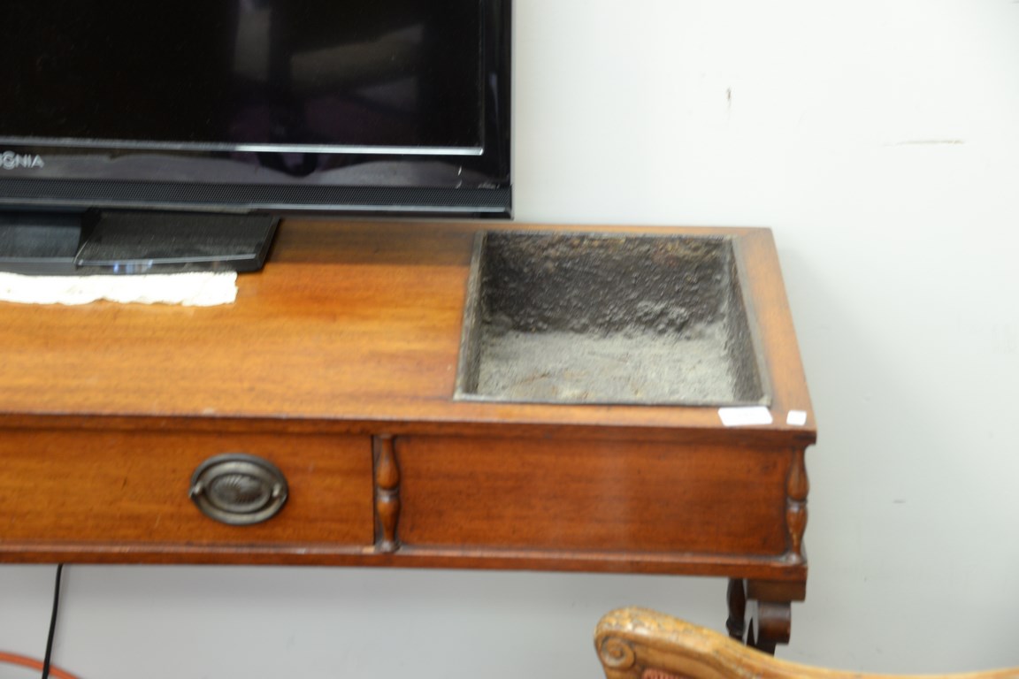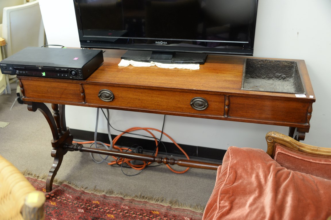 Mahogany table/planter. ht. 29 1/2 in. wd. 54 in. dp. 18 in.