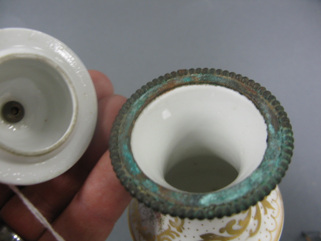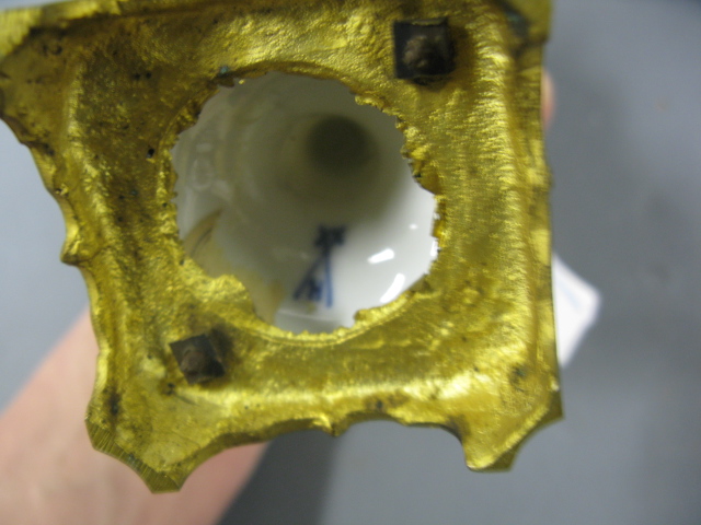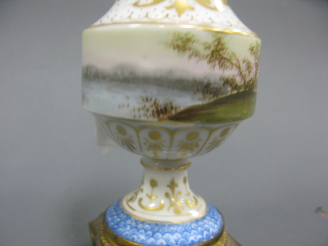 Meissen porcelain neo classic covered run with bronze base.