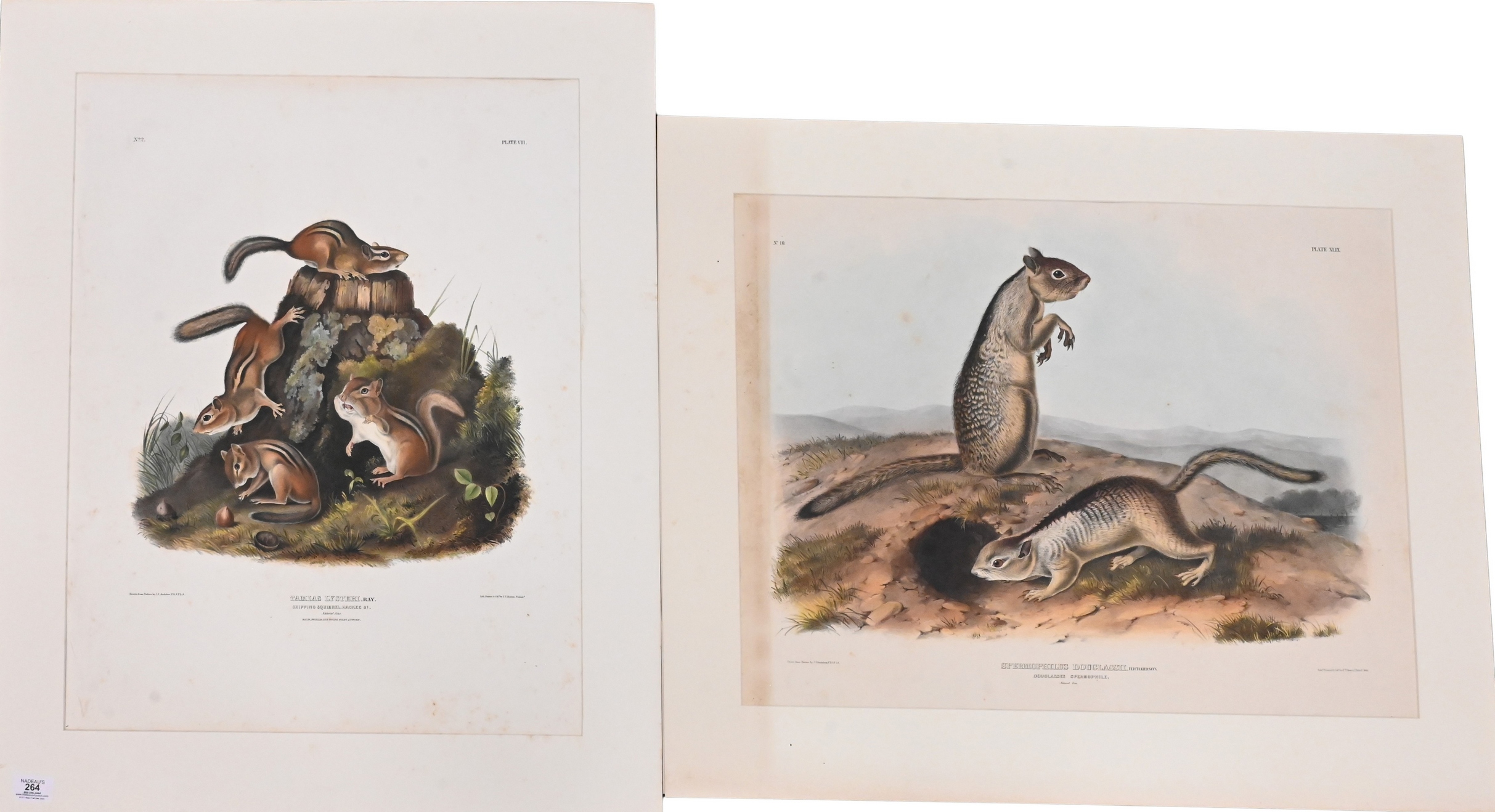 Hand-colored lithographs by John T. Bowen (American 1801-1865) from The Viviparous Quadrupeds of North America, Imperial Bowen Edition.