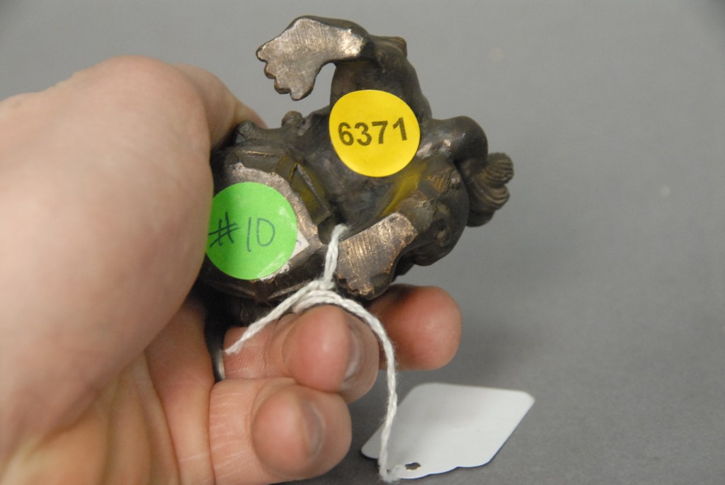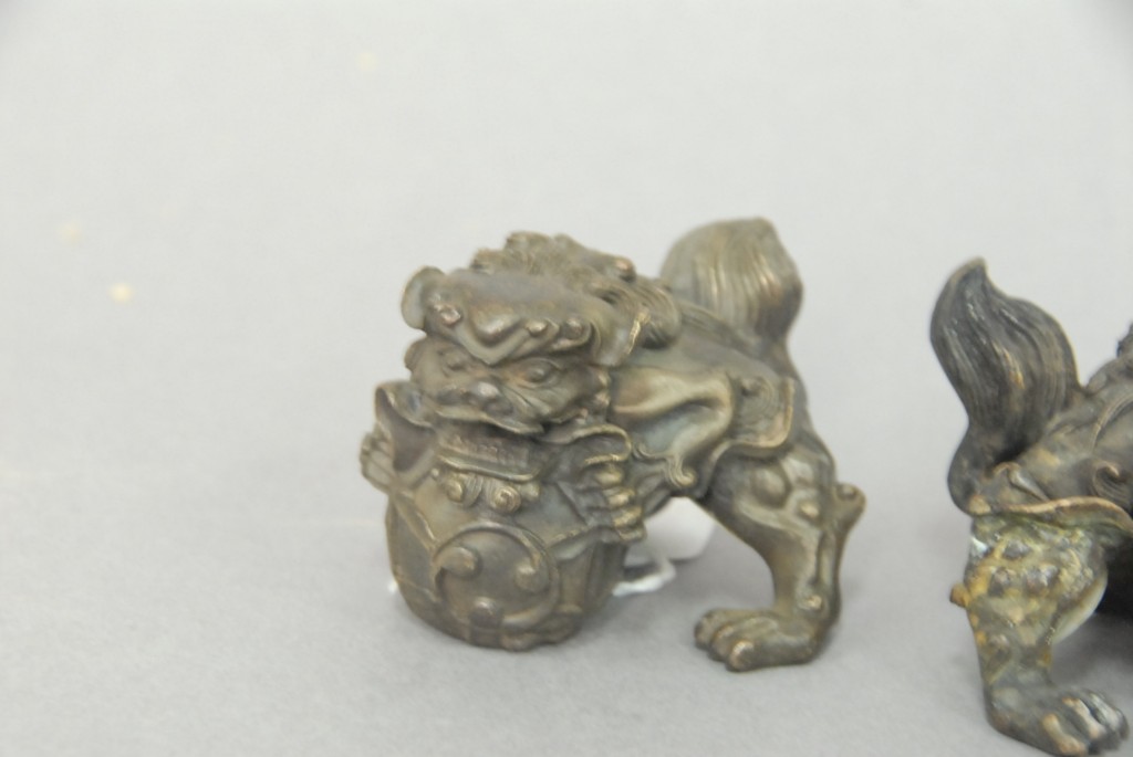 Small pair of bronze foo dogs, ht. 2.