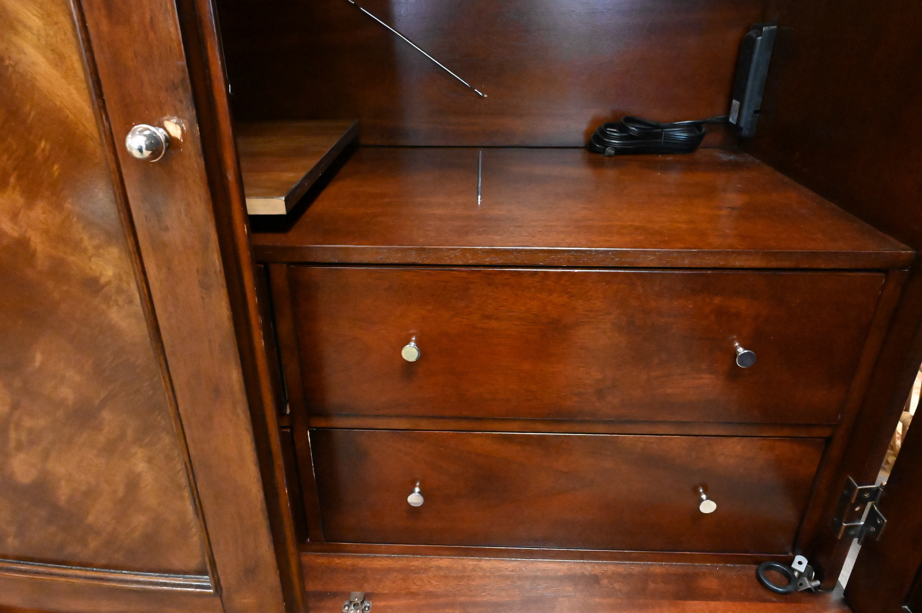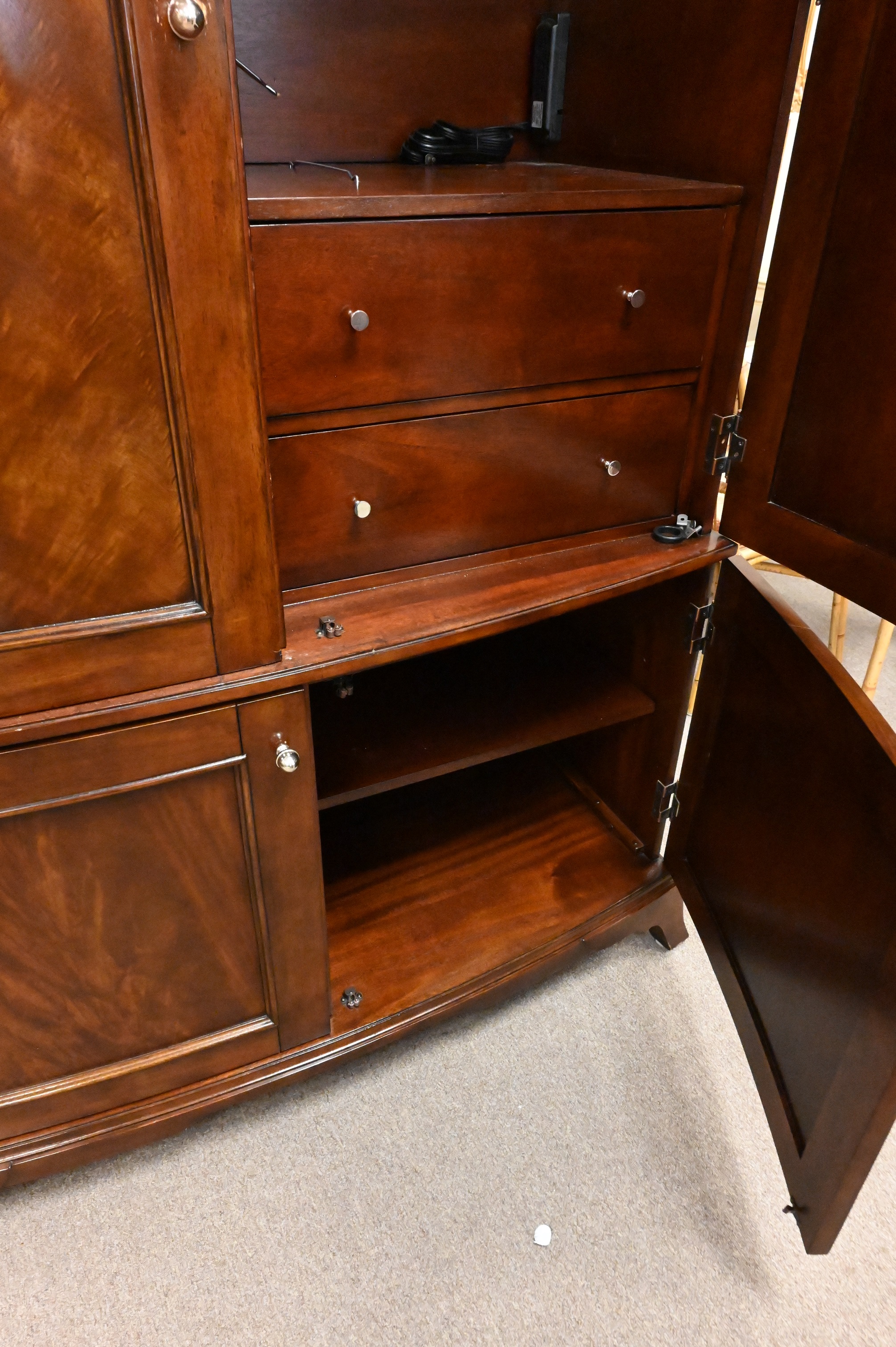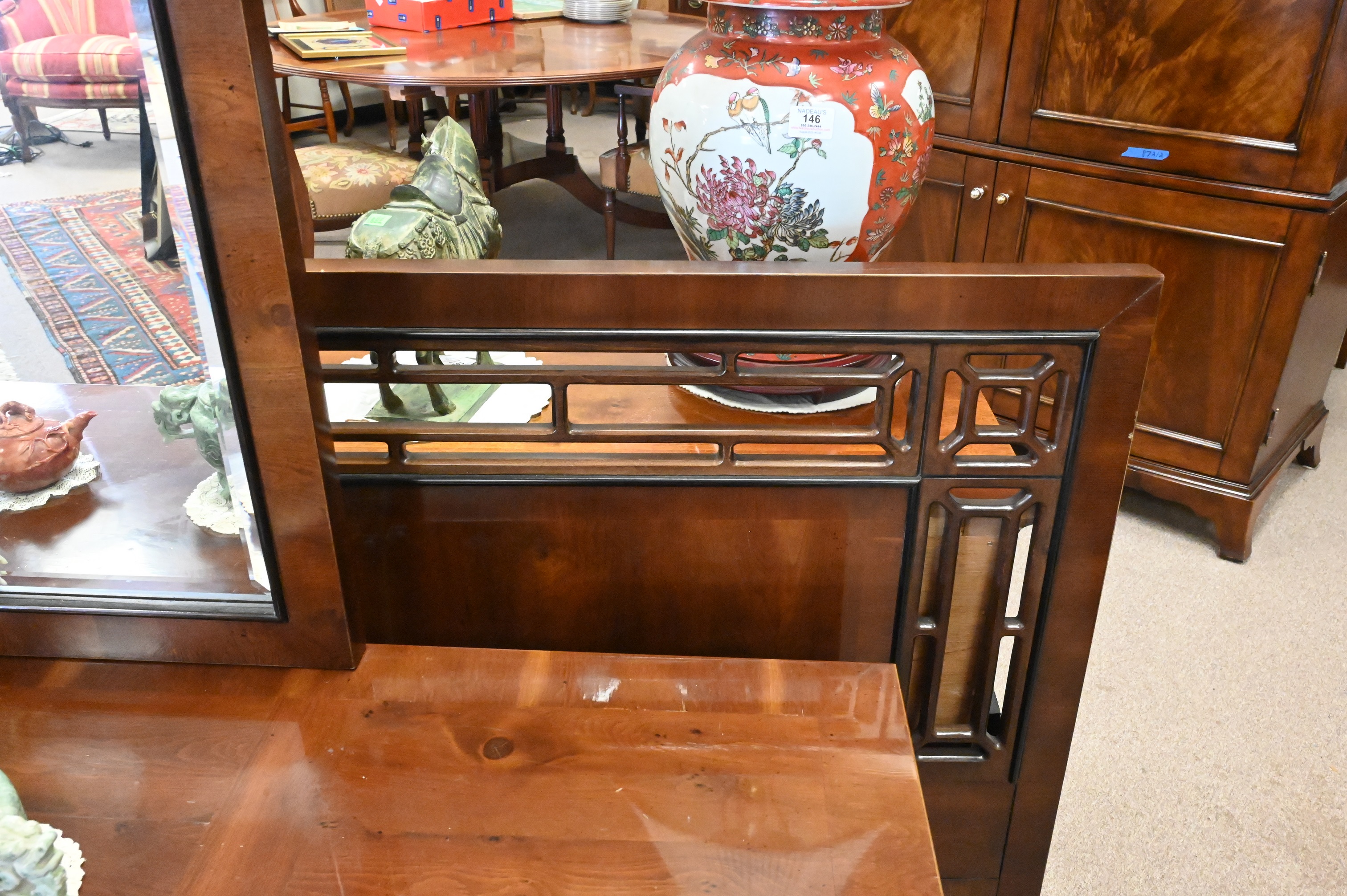 Three Piece Bedroom Set, to include Hickory white double chest with mirror, matching full sized headboard, along with a two part Martha Stewart collection tall chest, tall chest height 85 inches, width 50 inches, double chest height 30 inches, top 19″ x 64″