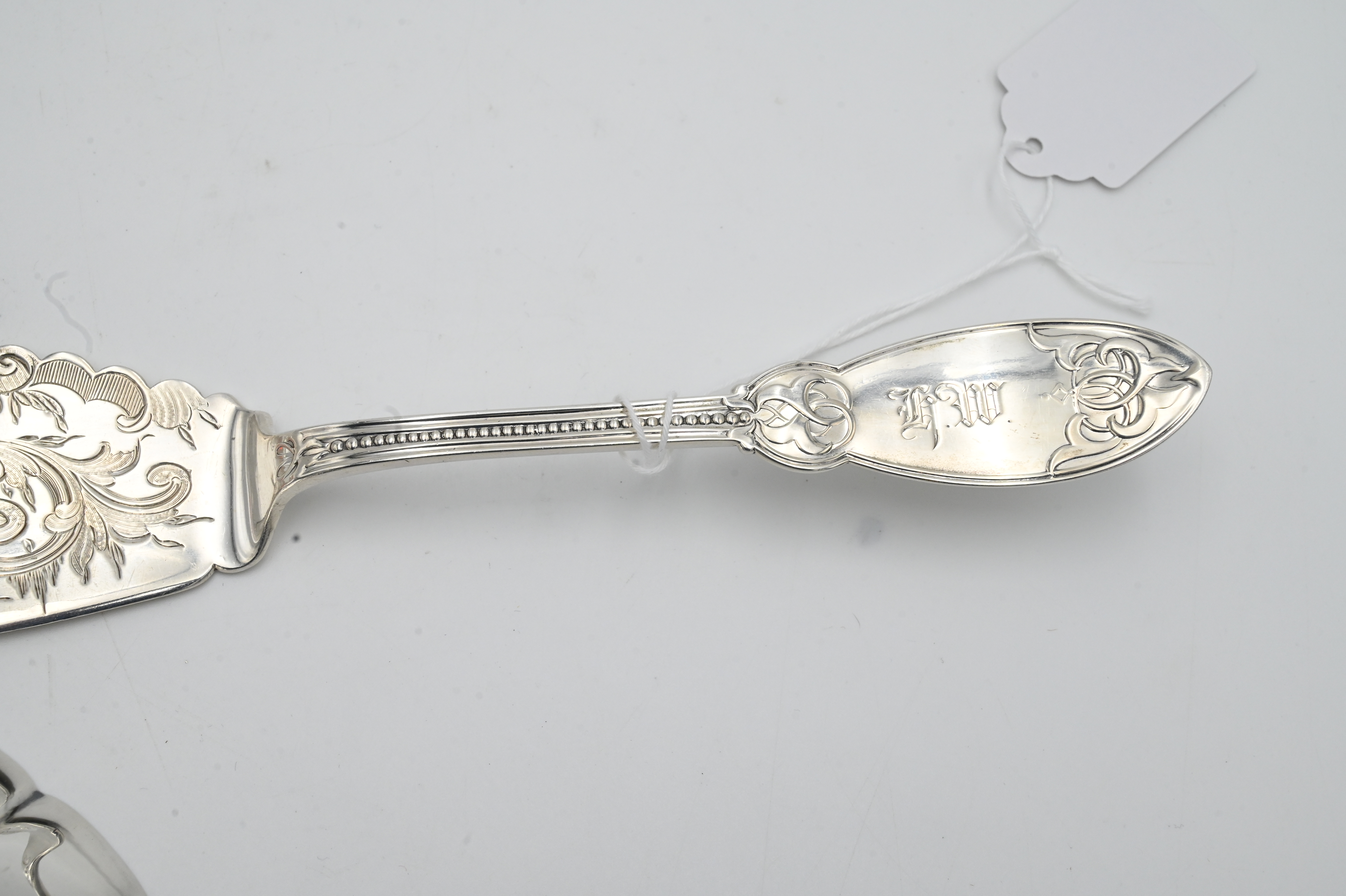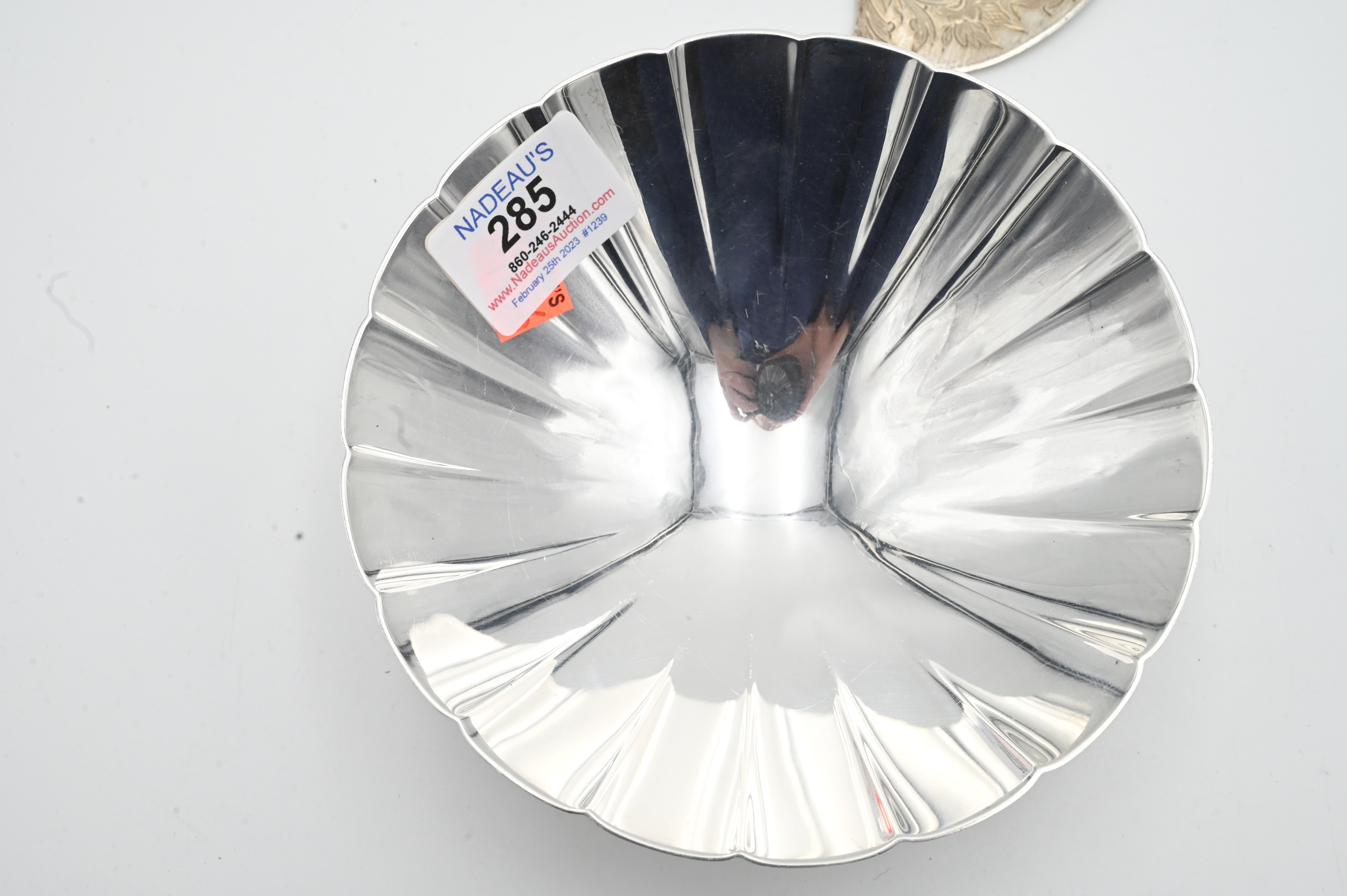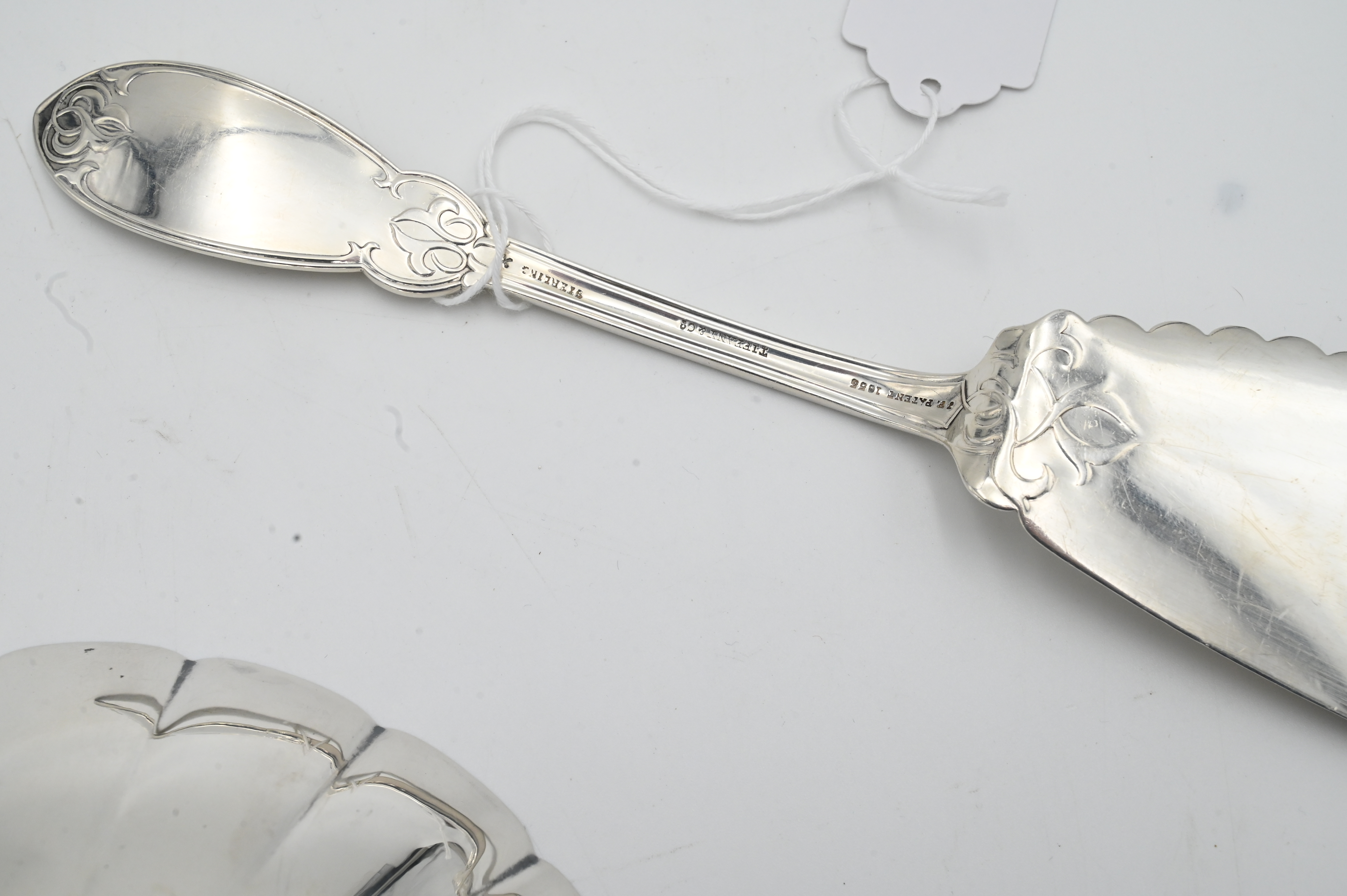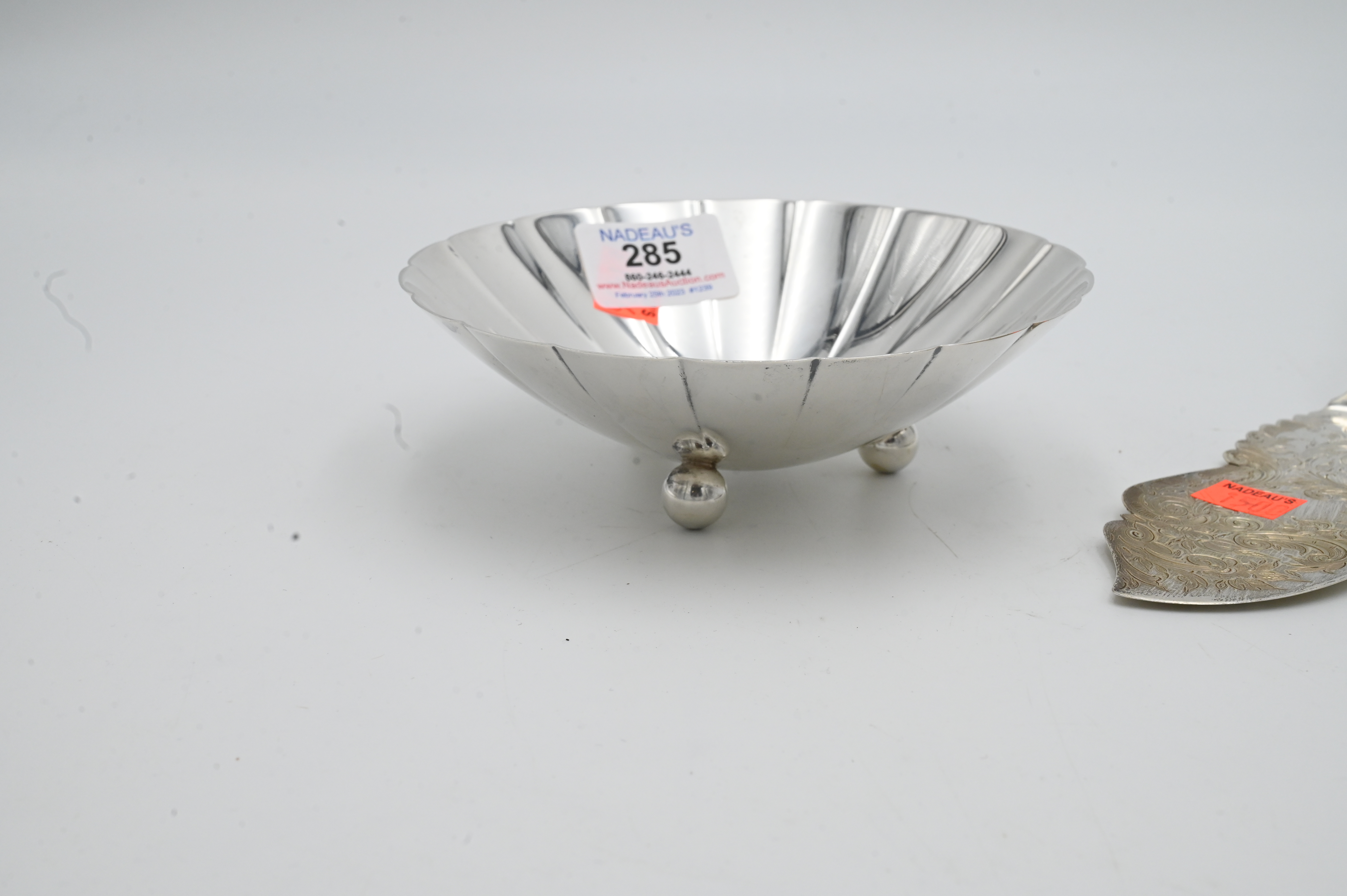 Tiffany & Company Two Piece Lot, to include a bowl having three ball feet, diameter 6 inches, along with a Victorian slice, length 11 inches, slice with small crack.