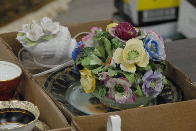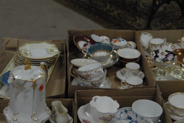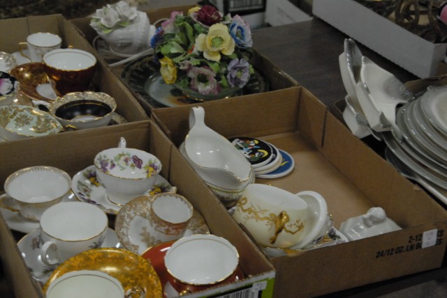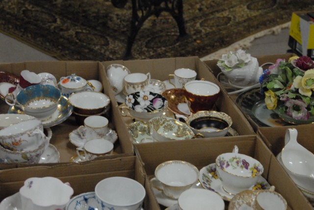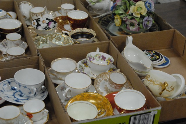 8 box lots of various china, cups, saucers, plates, teapot, gravy boat.
