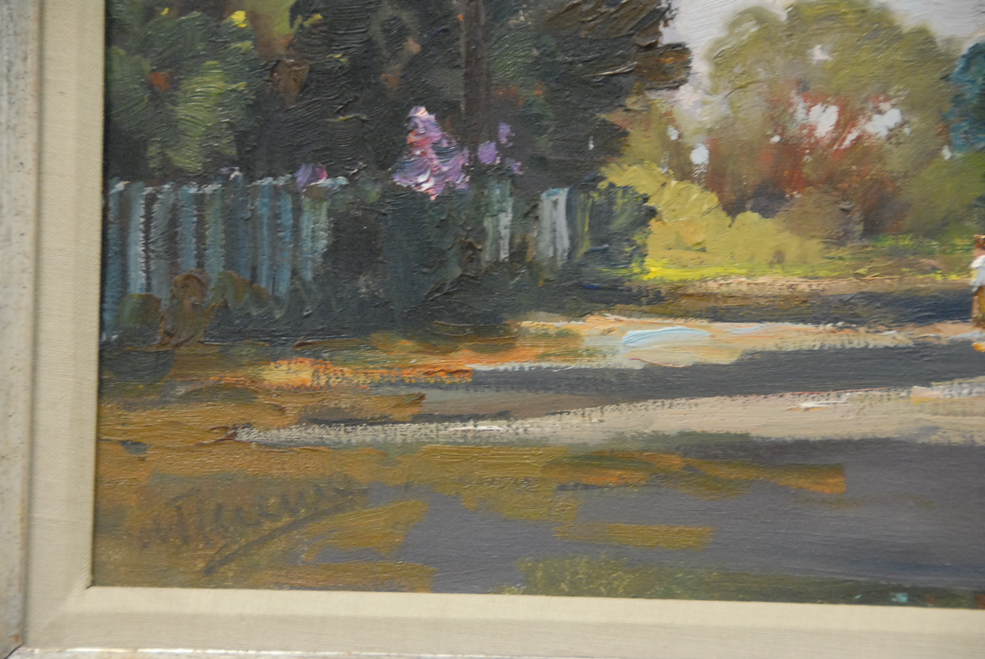 Lot 286: Anthony Thieme 1888-1954 FALL SUNLIGHT ON PROSPECT STREET, ROCKPORT oil on canvas signed lower left A Thieme 20 x 24 Provenance: Property from The Estate of Elizabeth Tishler of Middletown, Connecticut.
