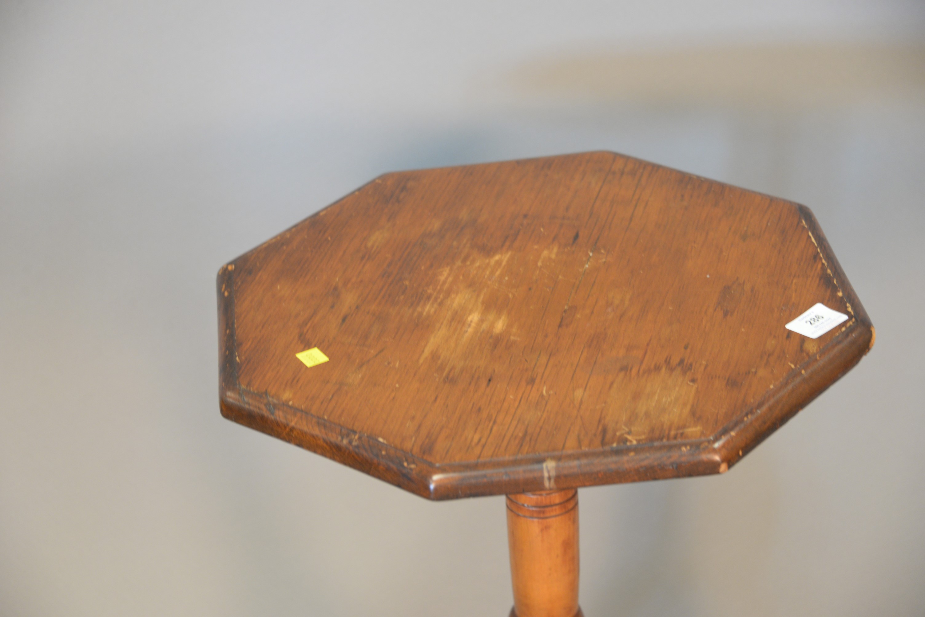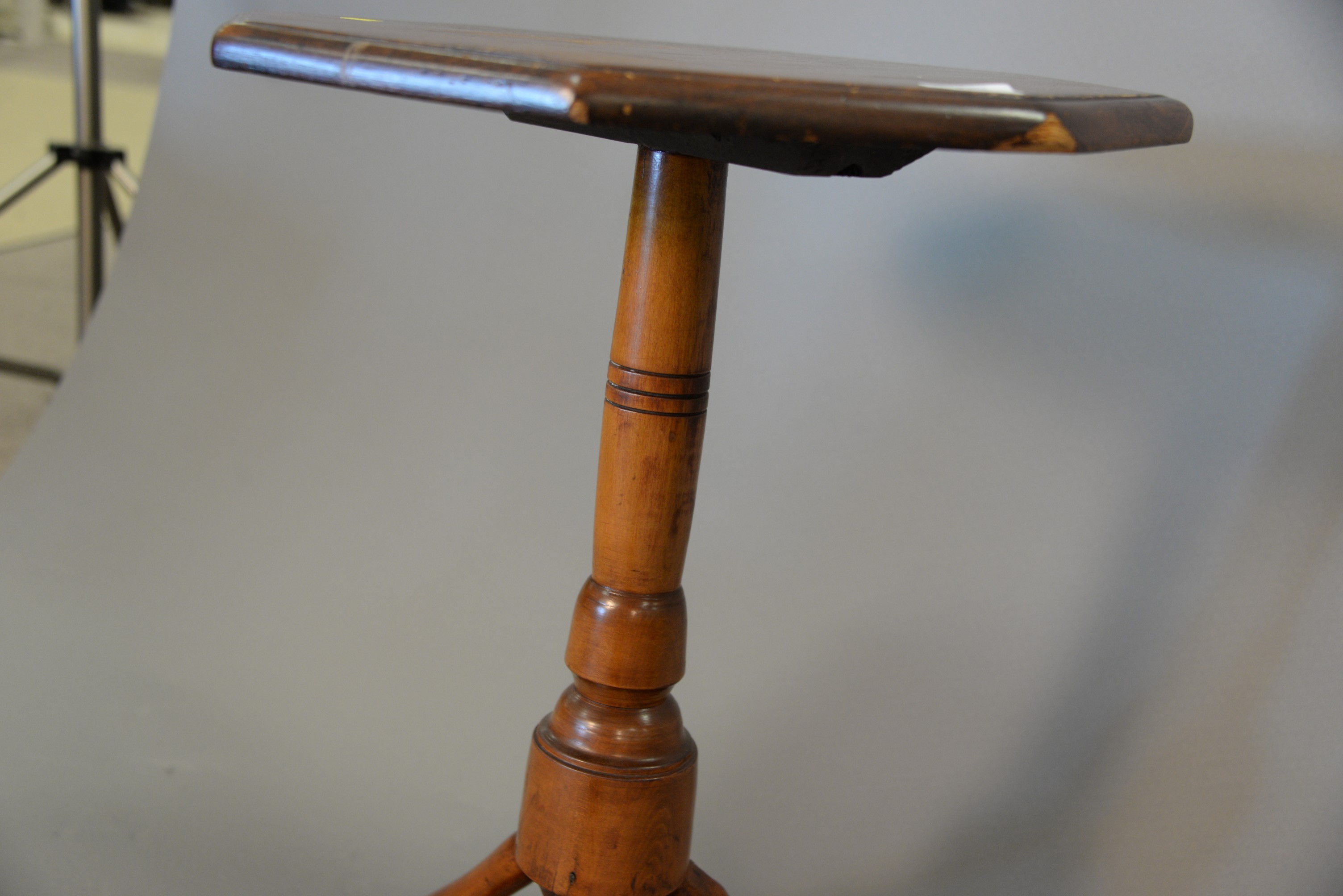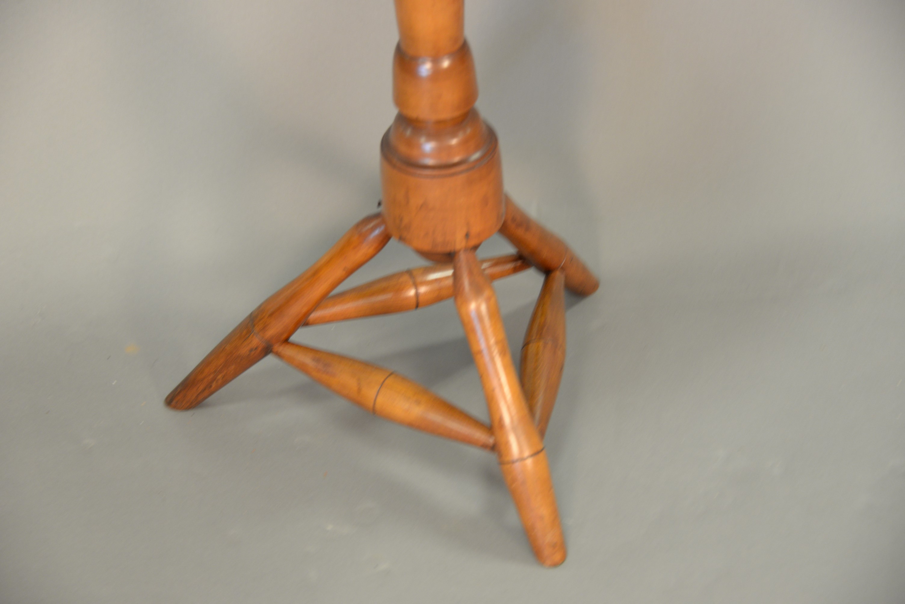 Lot 286: Candlestand with octagon top on turned shaft set on three turned legs connected by turned supports, New England early to mid 18th ce…