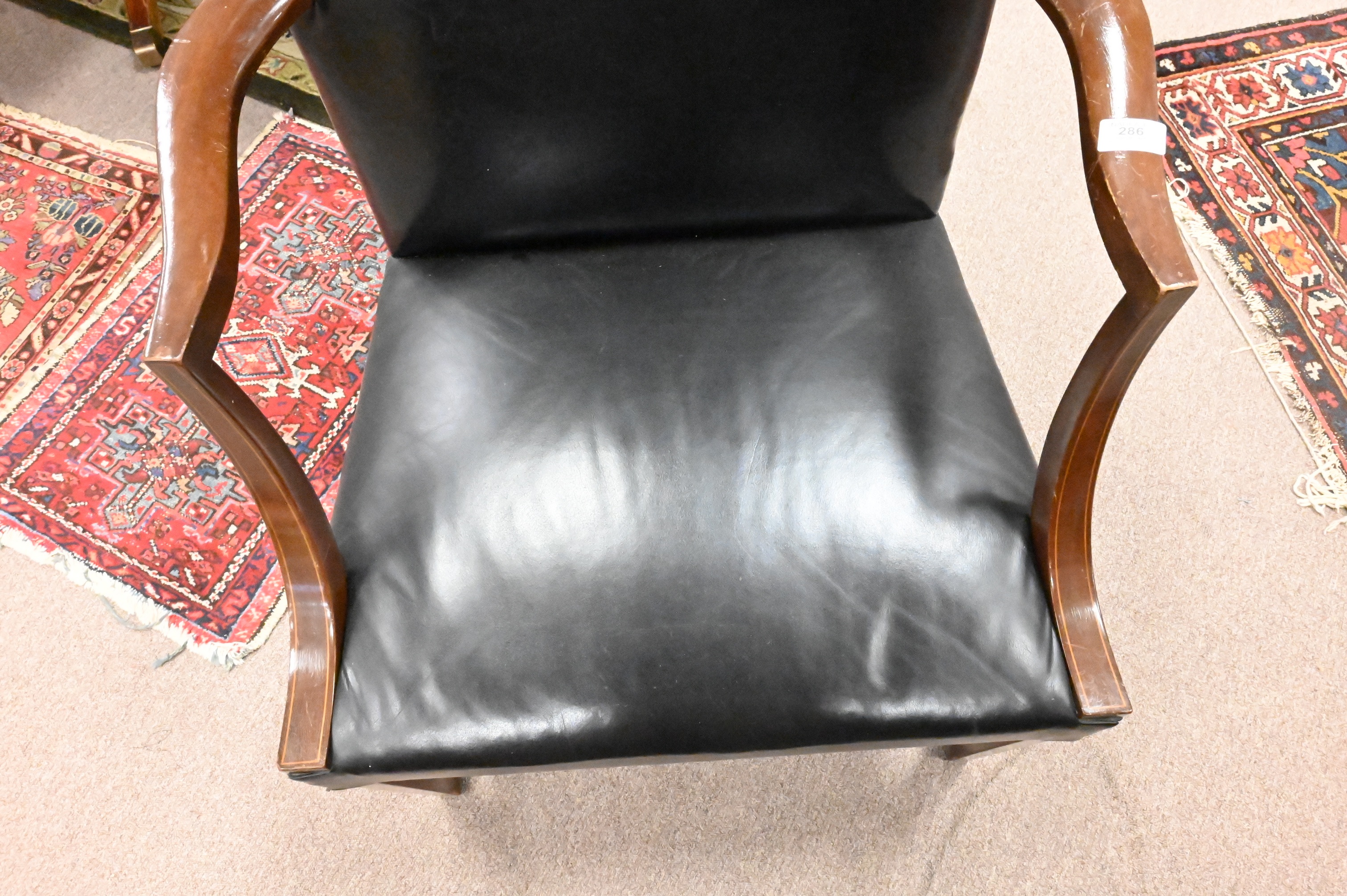 Lot 286: Chippendale Style Inlaid Leather Executives Chair