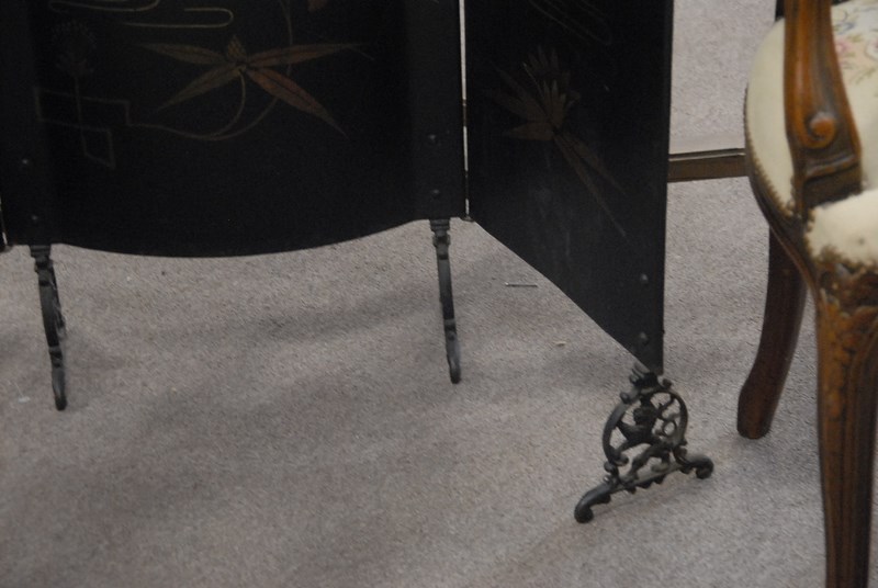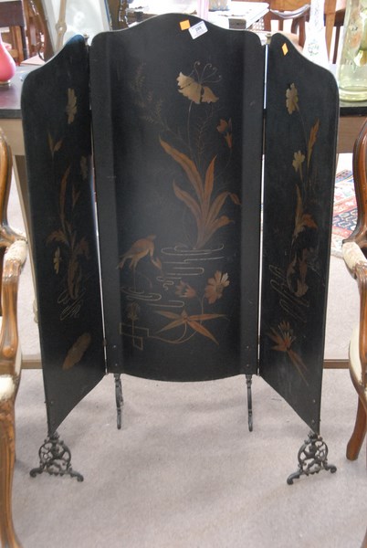 Metal paint decorated three part fire screen. ht. 45in. wd. 43in.