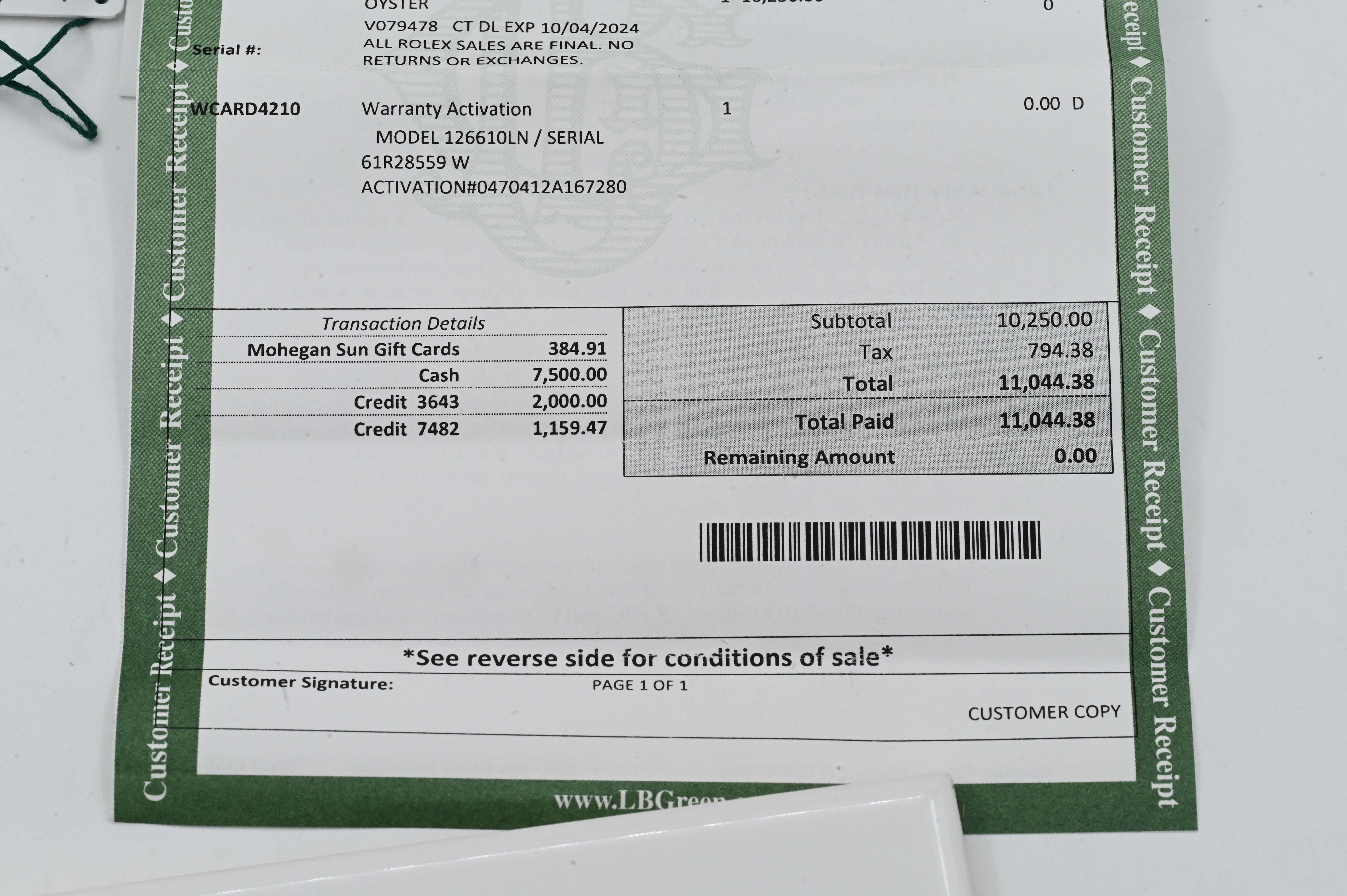 stainless steel with black dial, never worn, purchased from Luxbond and Green on 2/28/24 and consigned to us on the same day, sold with receipt $11,044 new price, with box