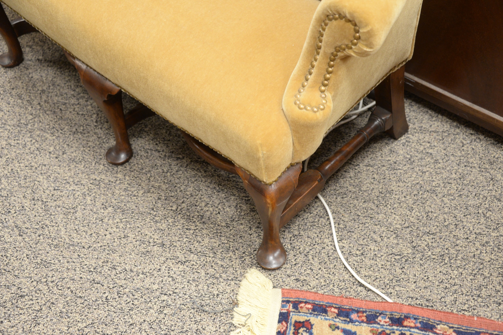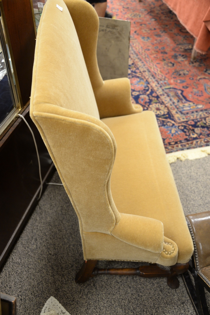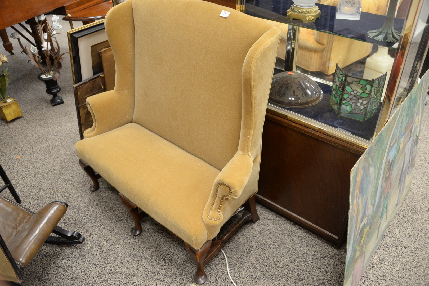 Lot 286: Queen Anne Style Child’s Size Upholstered Settee, on cabriole legs, height 39 inches, seat height 16 inches, width 36 inches.