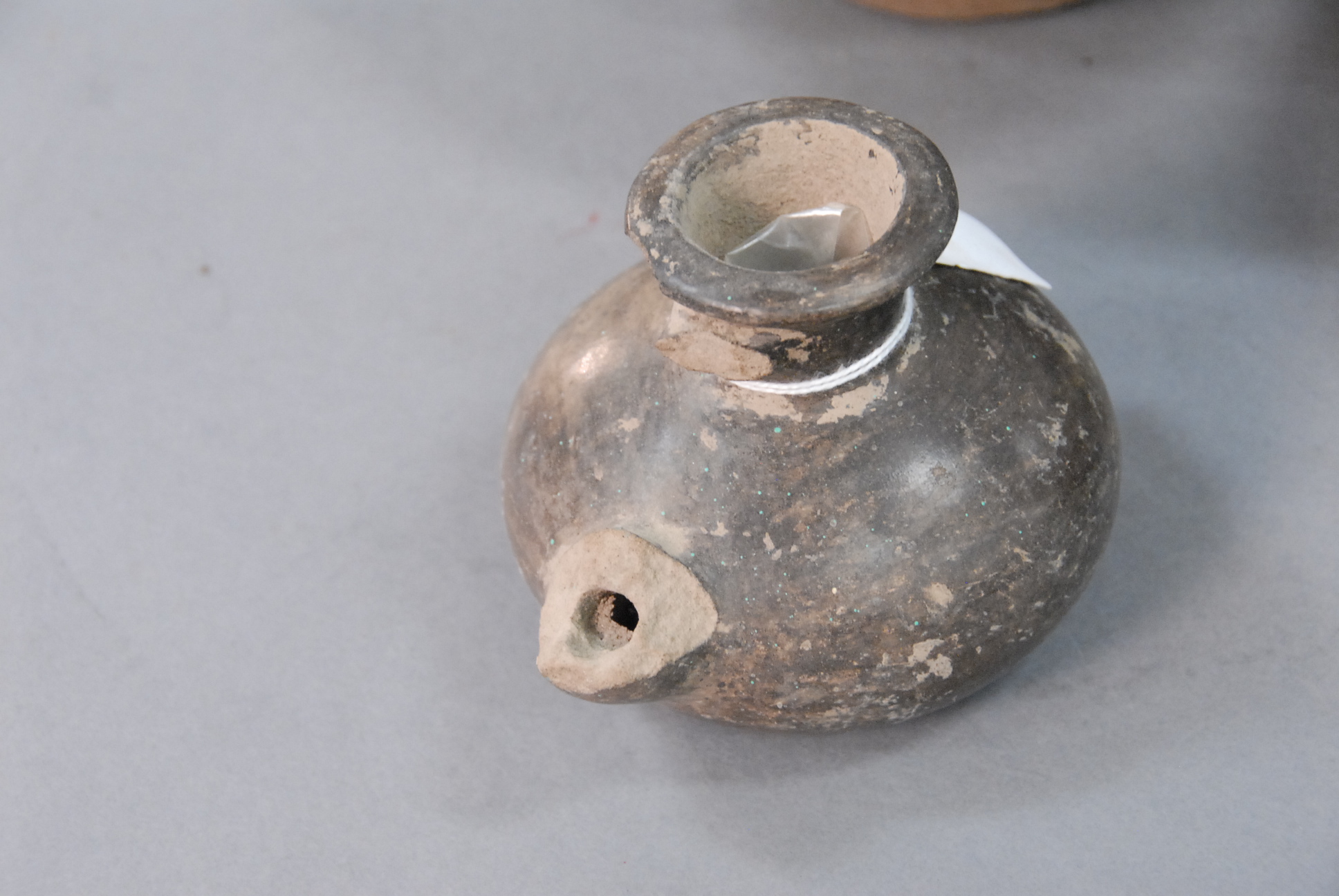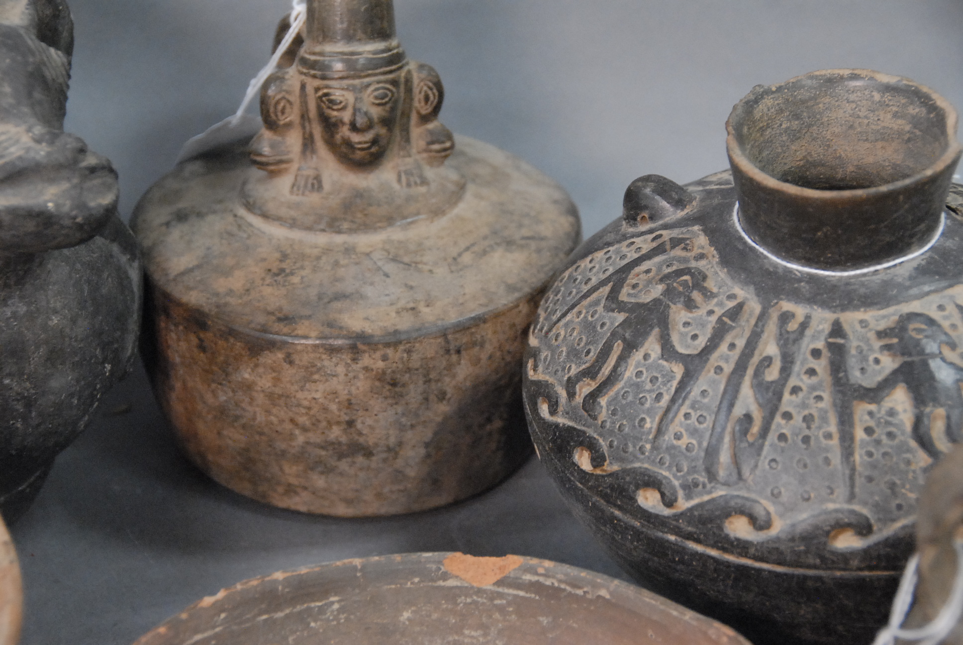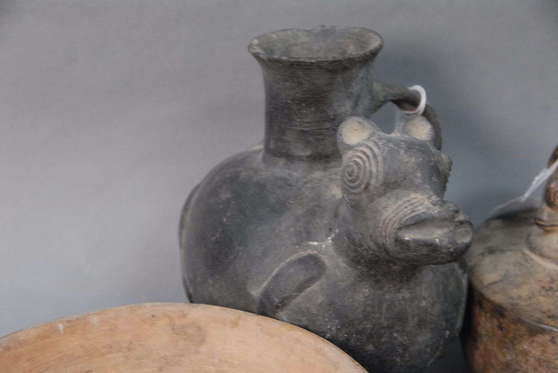 Seven piece lot of earthenware, five vessels and two bowls, probably South American.
