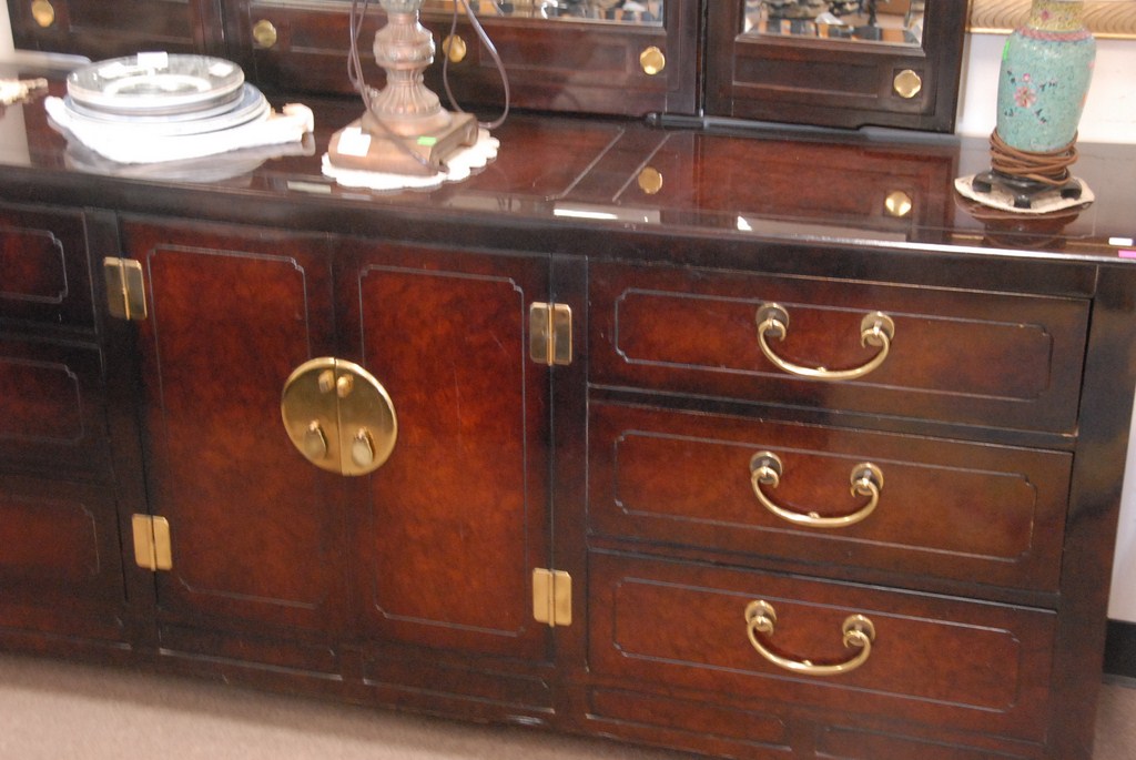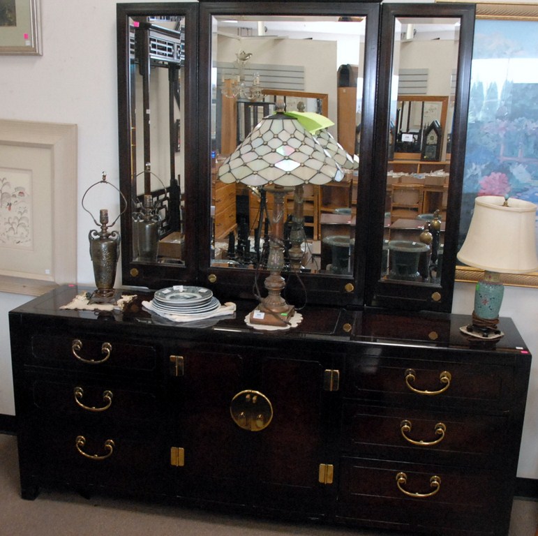 Triple dresser with tri-fold mirror, total ht. 78, wd. 75.