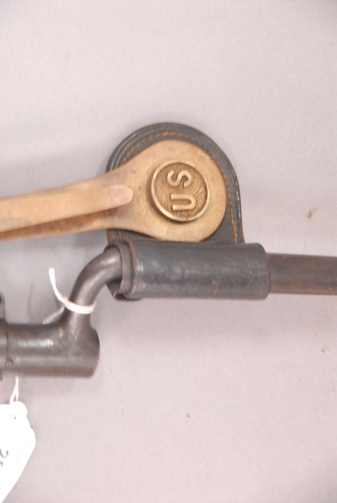 Bayonet and scabbard for 1879 Springfield musket with brass U. S. belt hook.