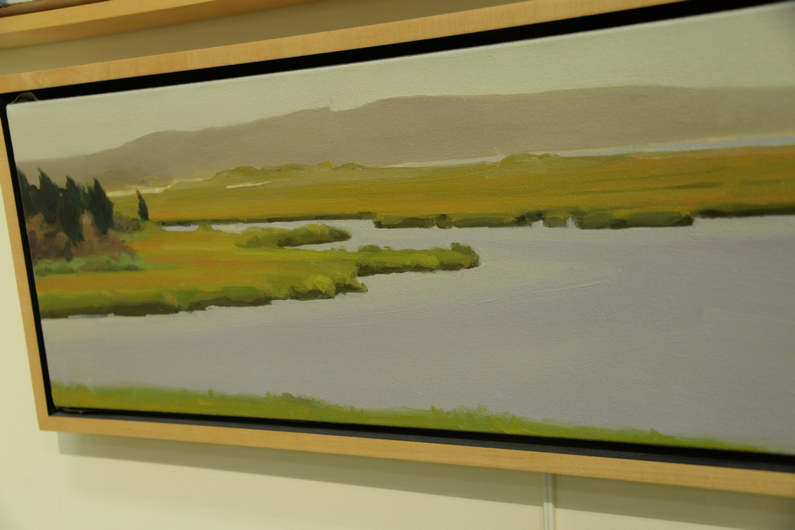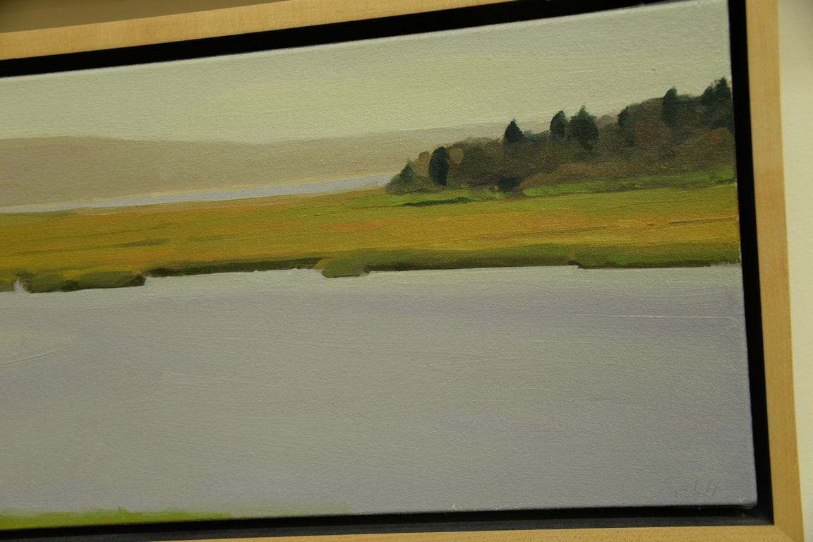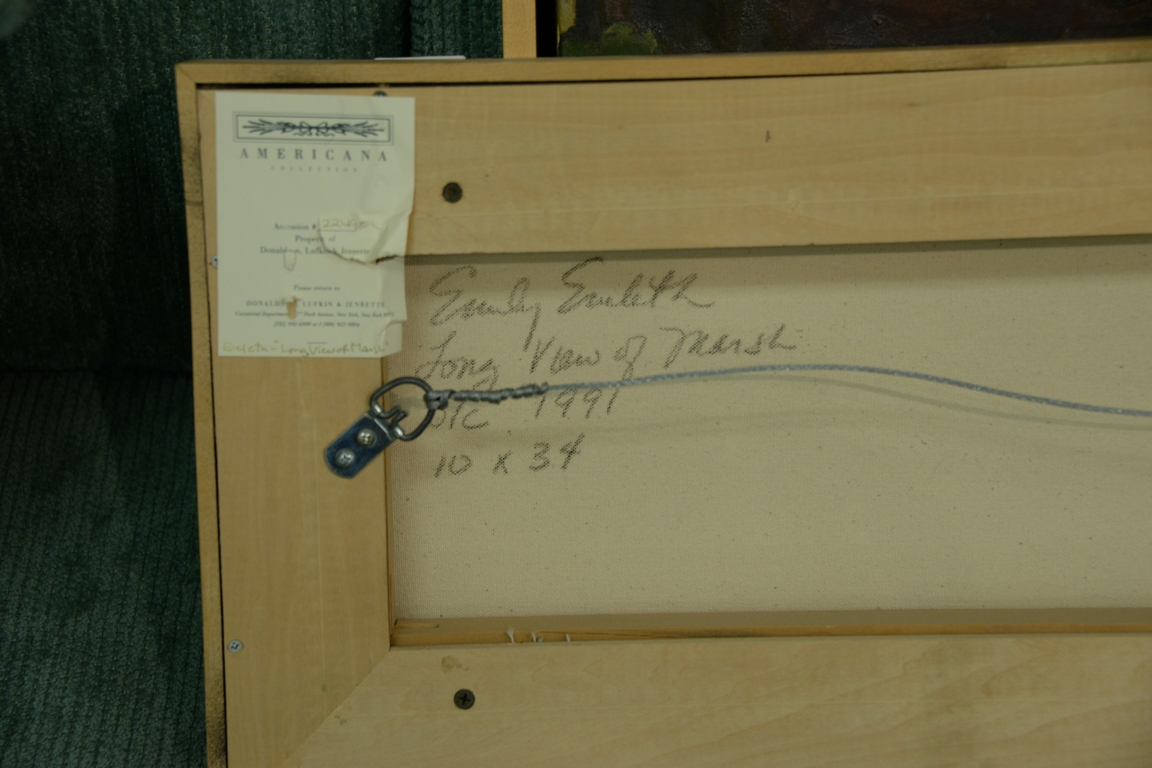 Lot 287: Emily Eveleth b. 1960 oil on canvas Long View of Marsh, signed, dated, and titled on verso, 10 x 34 Provenance: Property from…