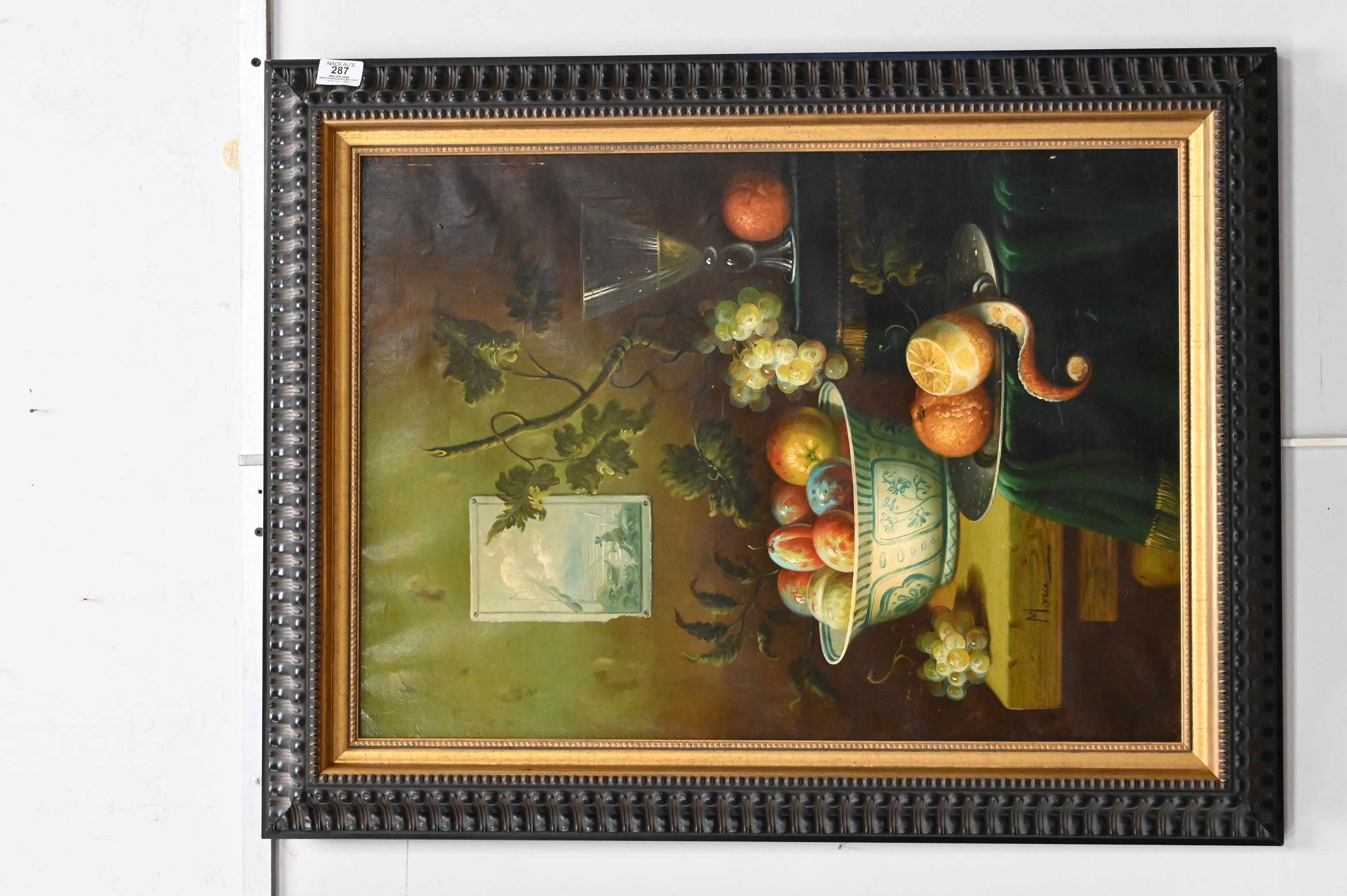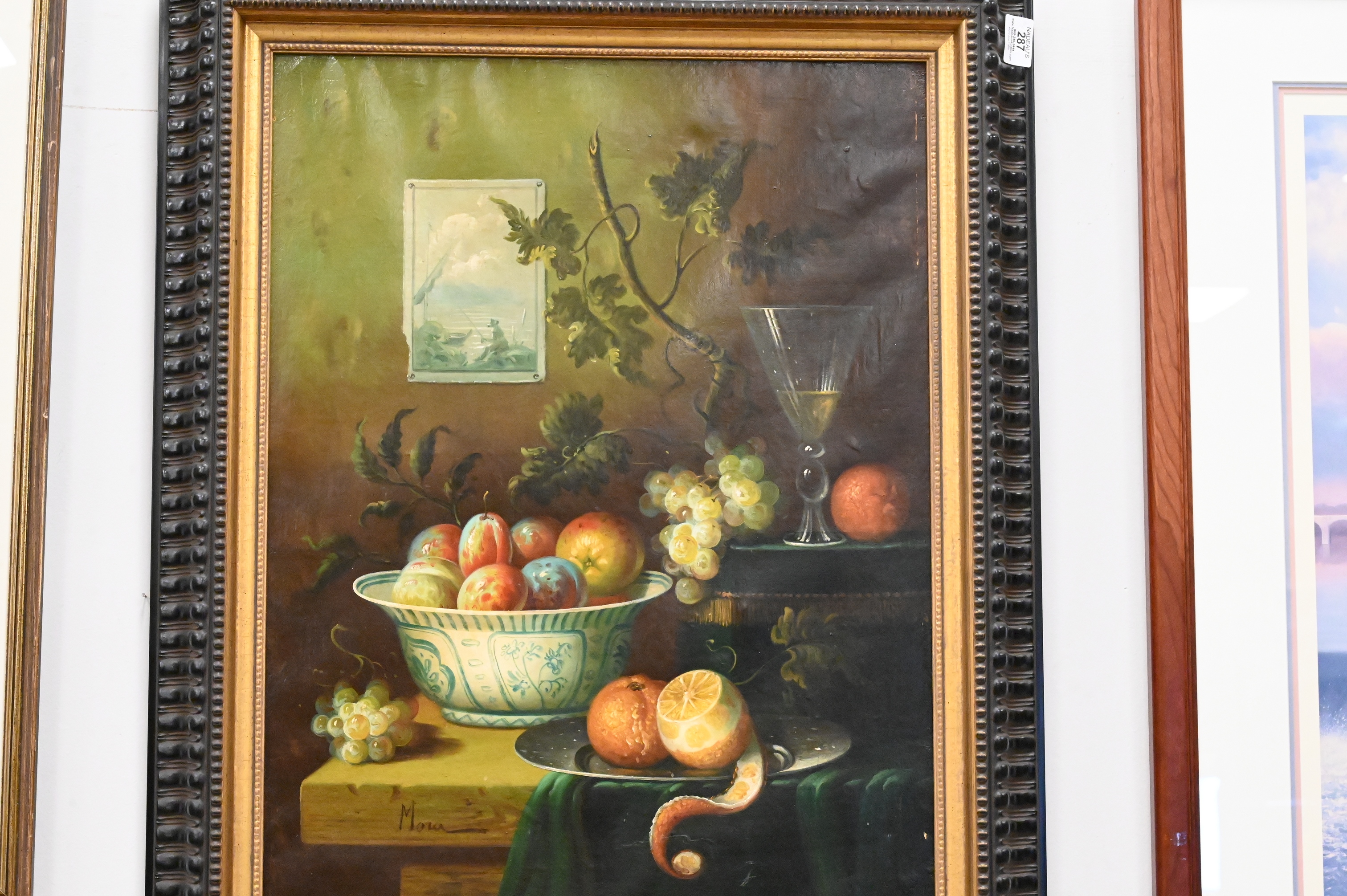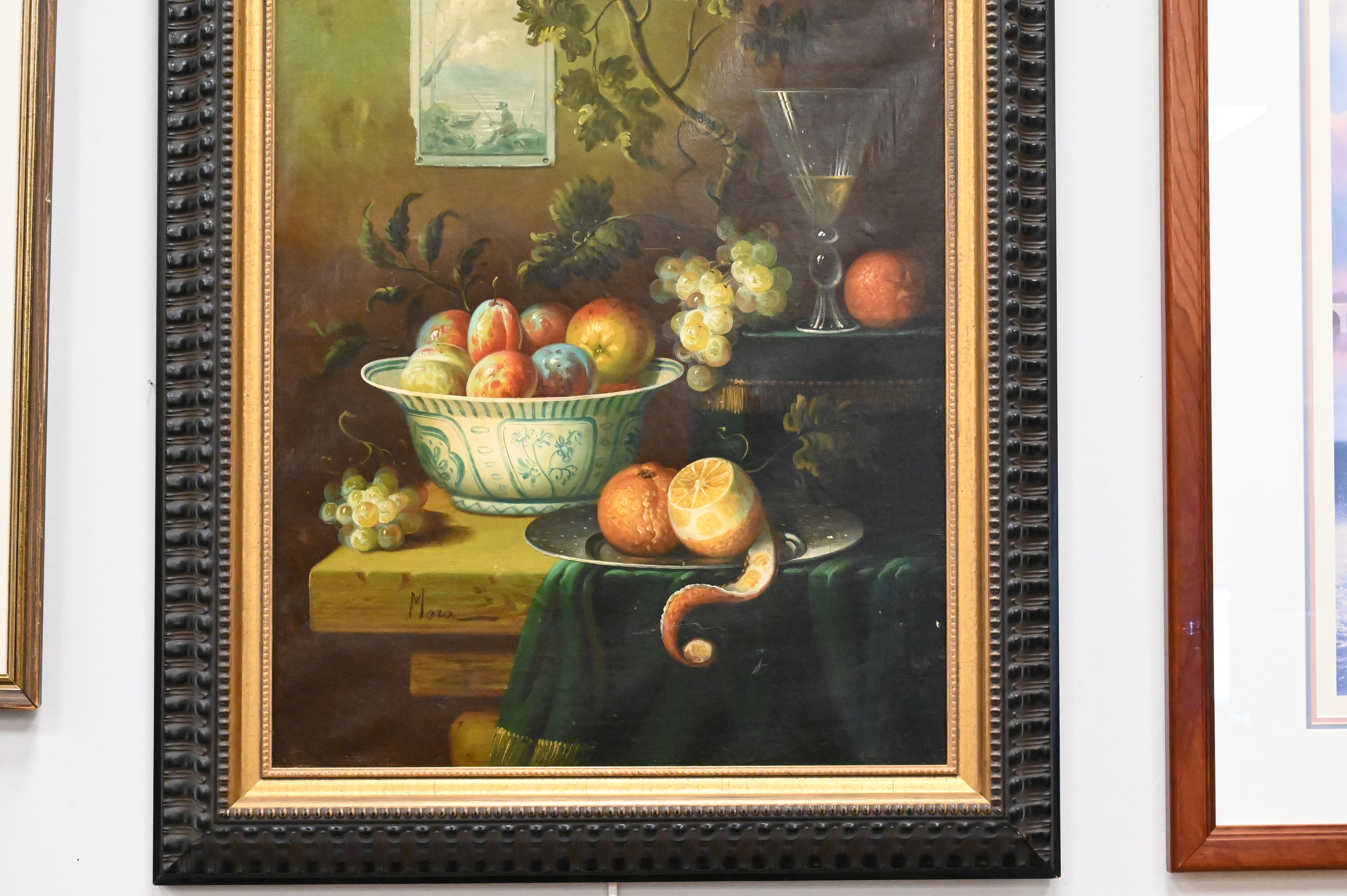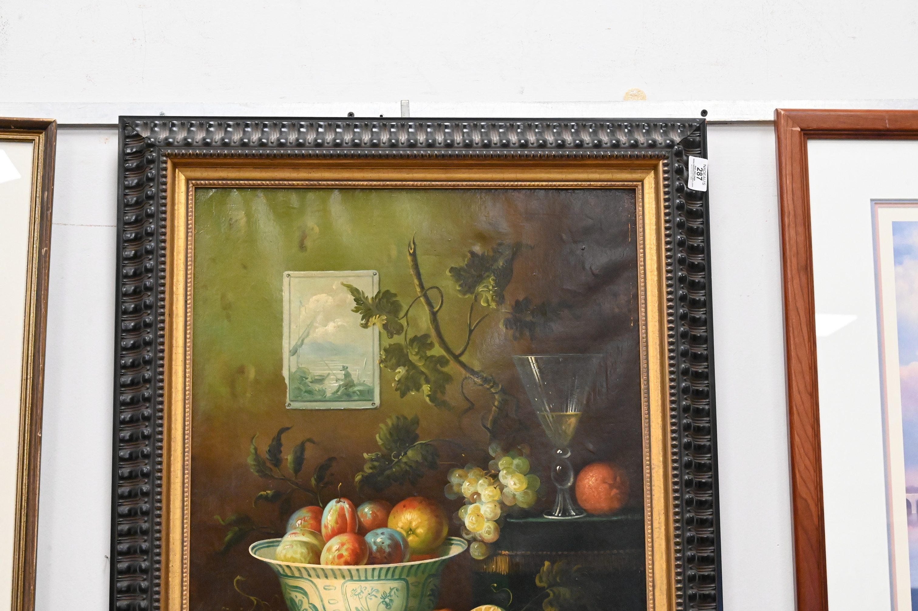 Dutch Style Still Life with Fruit, Wine Glass + Bowl