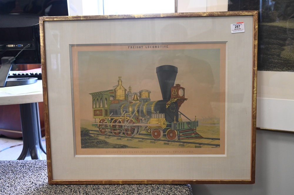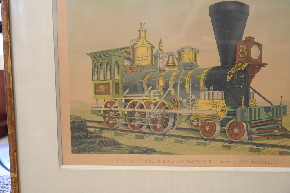 Lot 287: Freight Locomotive, Richard Norris and Sons Locomotive Builders, Philadelphia, lithograph in colors, sight size 17 3/4 x 13 1/4 inches.