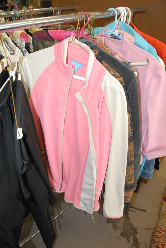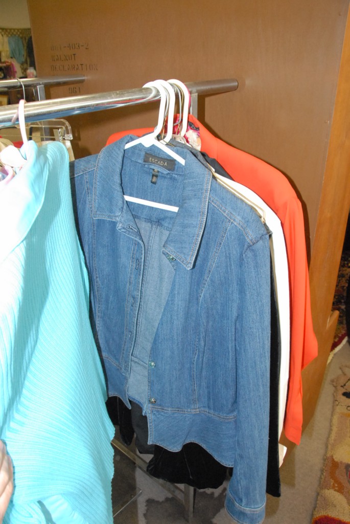 Half rack of clothing to include sweatshirts, sweat pants, sweaters, jackets etc., J. Jill, Escada, St. Johns Sport, Liz Claiborne, Peter Cohen etc.